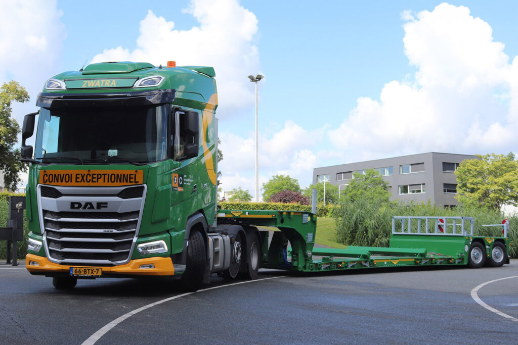 “De chauffeurs van Zwatra zijn lovend over het gebruiksgemak van de oplegger. De hydraulische besturing, in combinatie met de afstandsbediening, maakt het mogelijk om zelfs in de meest uitdagende omstandigheden efficiënt en veilig te manoeuvreren. Dit verhoogt niet alleen de veiligheid, maar zorgt ook voor een soepelere en snellere uitvoering van het transport.”