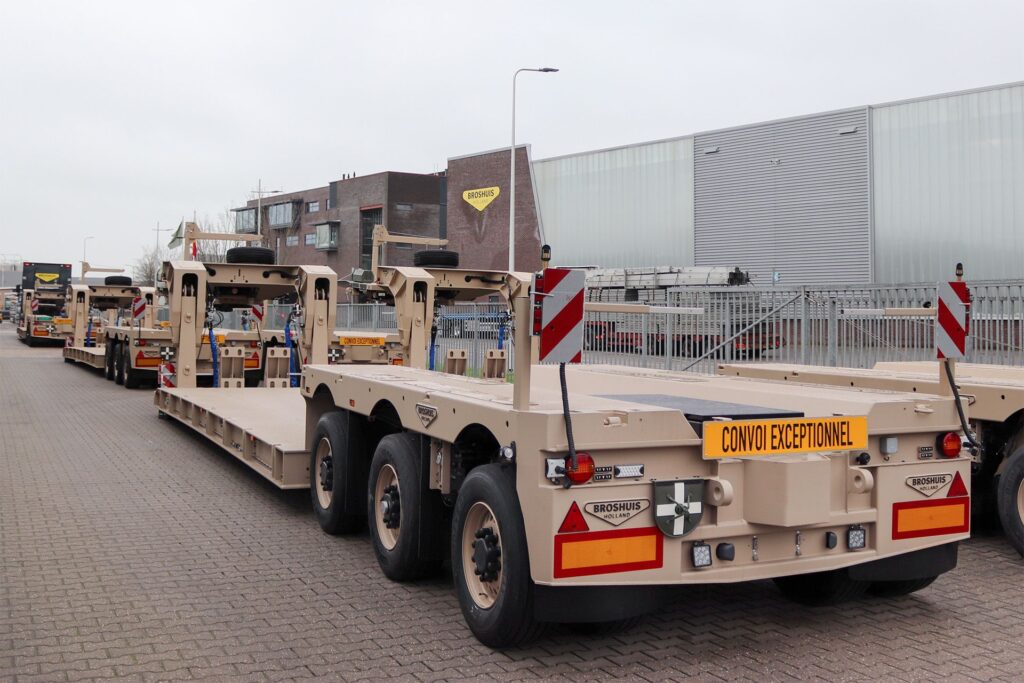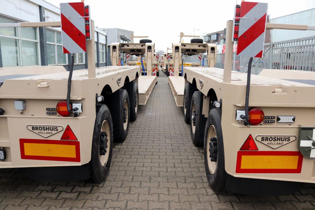 Acht nieuwe 3-assige Broshuis-diepladers zijn vorige week officieel afgeleverd aan de Belgische Defensie. Samen met de vijf exemplaren die in oktober zijn geleverd, komt het totaal daarmee op dertien. Alle trailers zijn inmiddels goedgekeurd en worden deze week verdeeld over verschillende Belgische kazernes.