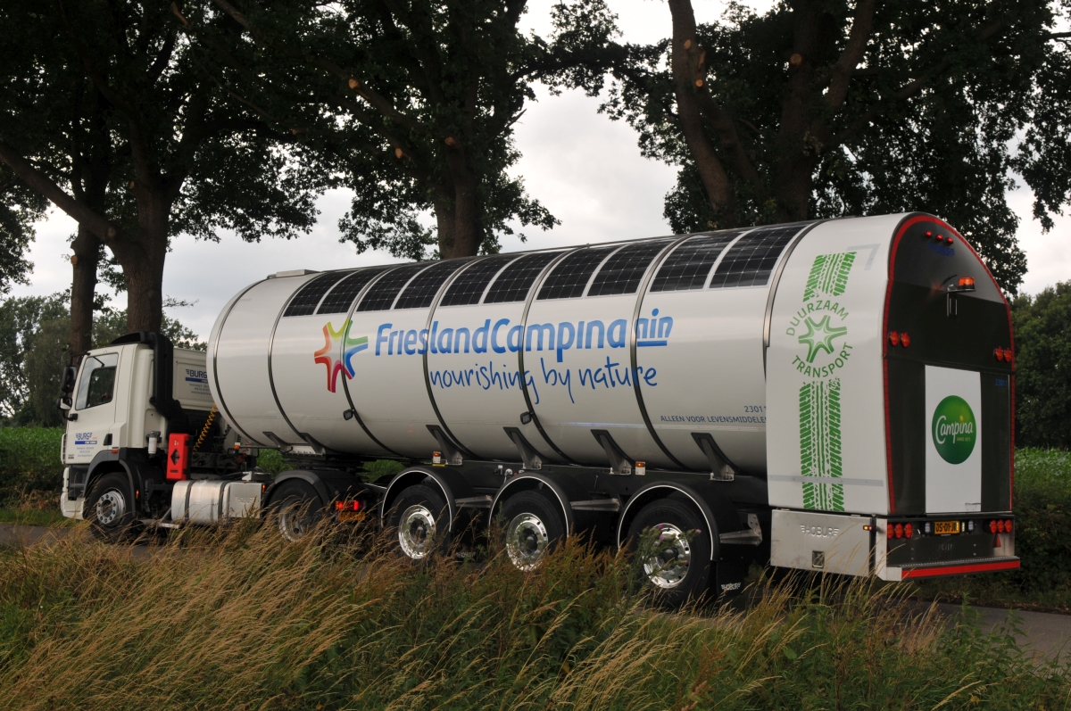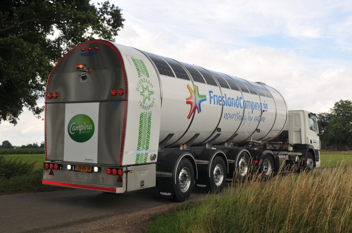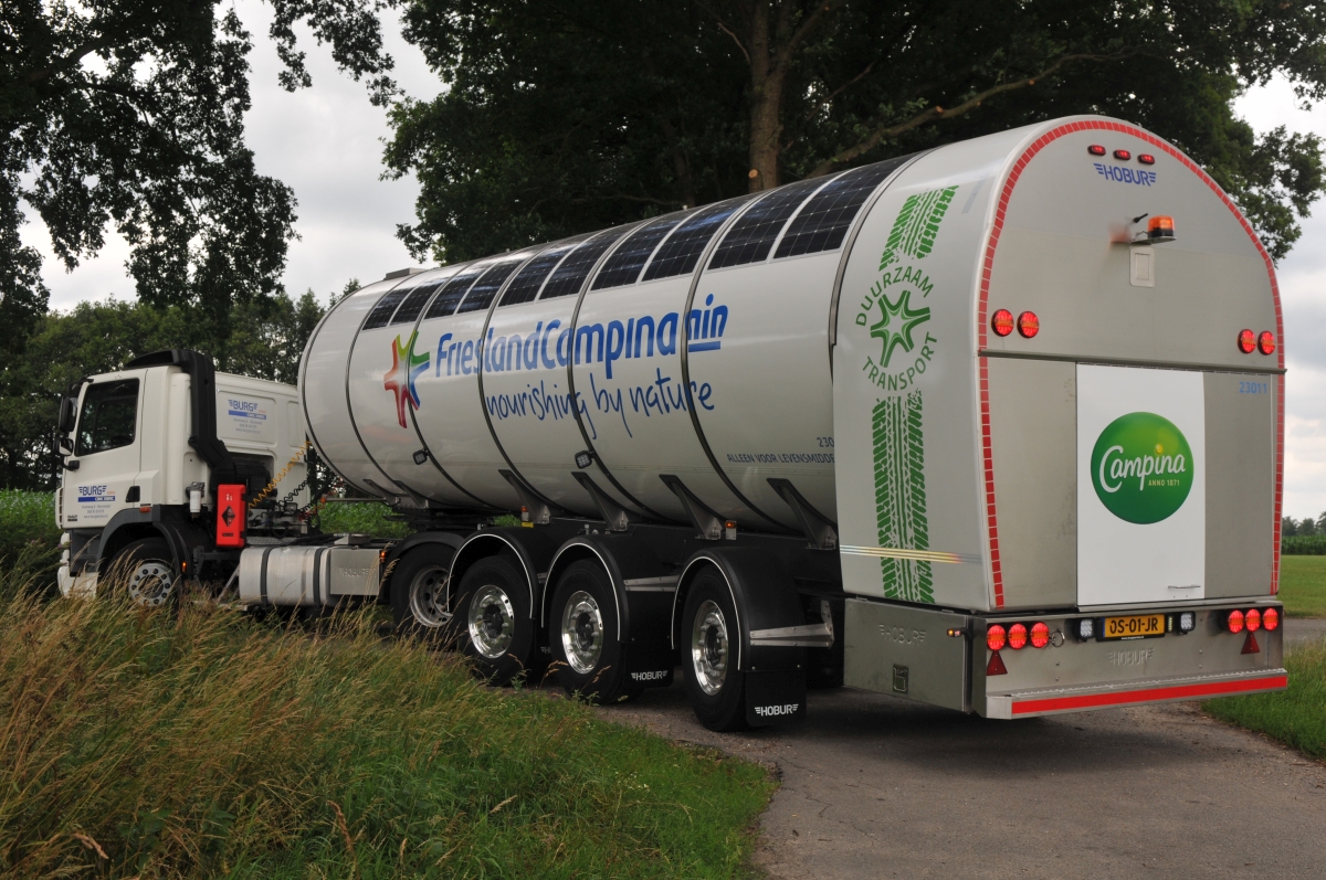 De nieuwe zelfdragende trailer is daartoe voorzien van een energie-as met generator van Valx. Op de tank zijn zonnepanelen aangebracht, die het leeuwendeel van de energievoorziening voor hun rekening nemen. Deze trailer is geheel op de praktijk afgestemd. Overdag laden de accu’s met eigen opgewekte stroom. Als de accucapaciteit te laag is, beschikt de trailer over een stekker die bij de boerderij aangesloten kan worden, legt managing director Jan Bunk van Burg Service uit. “Verder is het een standaard trailer met standaard pompinstallatie. De gewichtstoename heeft Burg Service tot een minimum weten te beperken. Daardoor kan er gewoon 37 ton melk geladen worden, net als vanouds,” aldus Bunk.