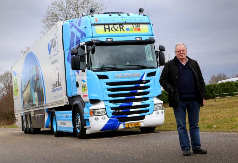 Jan Hoogland van VCM Leusden en H&R krijgt veel vragen van chauffeurs over de verplichte nascholing. Zijn bedrijf geeft ook rijtrainingen, onder andere in deze Scania.