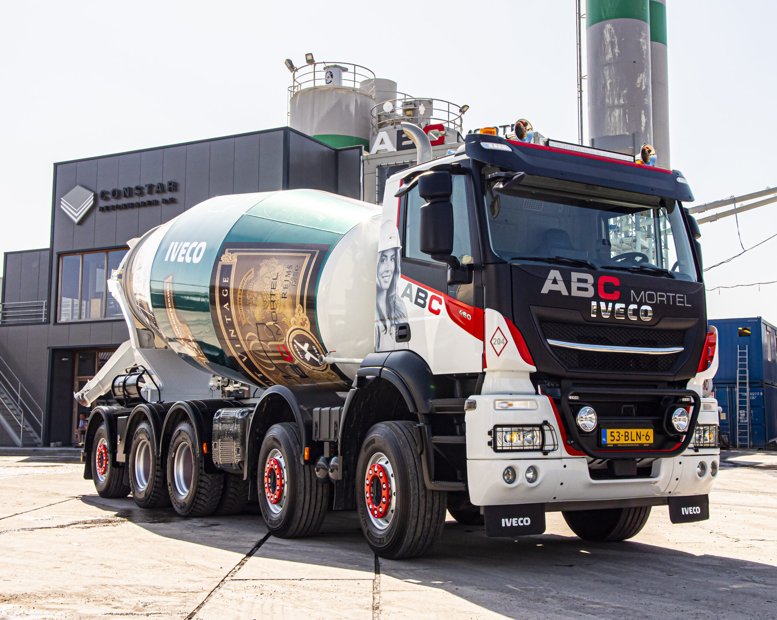 ABC Mortel uit Tiel heeft een opvallende betonmixer in ontvangst genomen. Om de succesvolle samenwerking tussen ABC Mortel en IVECO NLS te vieren is deze betonmixer extra feestelijk ontworpen. Het management licht dit toe: “We hebben altijd de neiging om de mixers bijzonder op te maken. Deze mixer is een voortvloeisel van de sprankelende samenwerking. Daarom hebben we gekozen voor een mixer met het uiterlijk van champagnefles.”