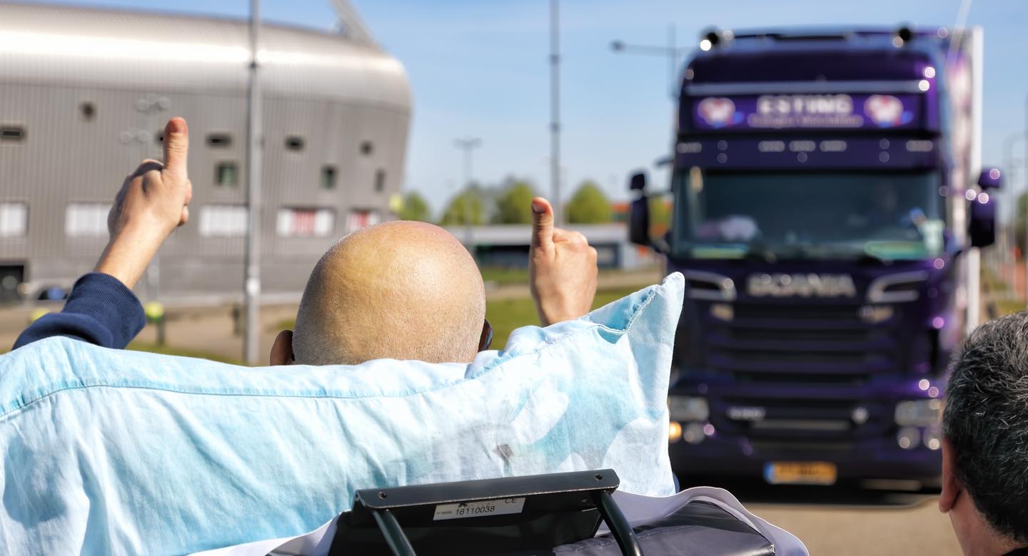 Frank Bakker, van Stichting Noah4All heeft de bijzondere dag voor Robert georganiseerd. Door de strenge corona-maatregelen had de organisatie van de dag voor Robert flink wat voeten in de aarde, vertelt Frank. “Op een gegeven moment zag ik door de bomen het bos niet meer. Toen hebben we met heel veel instanties overlegd: mag het nu wel, mag nu niet. En uiteindelijk hebben we gekozen voor een drive-by.” Toch mag het resultaat er zijn. “Het is zo mooi en zo waardig,” zegt Frank. “Als je dit ziet, dat wij toch de jongens in de auto kunnen laten, Robert voorbij kunnen laten gaan. Je ziet wat het met de chauffeurs doet. Je ziet wat het met Robert doet. Vandaag is de afstand hetgeen waar wij mee te maken hebben, maar vandaag is de afstand naar zijn hart toe een stukje minder groot geworden.”