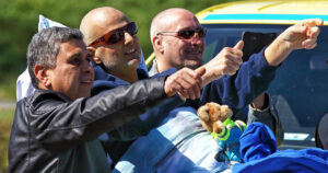 Vanaf het viaduct wordt Robert naar een andere plek gebracht, waar zijn collega’s nog een laatste rondje voor hem rijden. Weer klinkt er luid getoeter. Robert applaudisseert en steekt zijn beide duimen omhoog naar zijn collega’s. “Echt schitterend. Ik heb er geen woorden meer voor”, zegt Robert terwijl hij tegen zijn tranen vecht. “Echt klasse.”