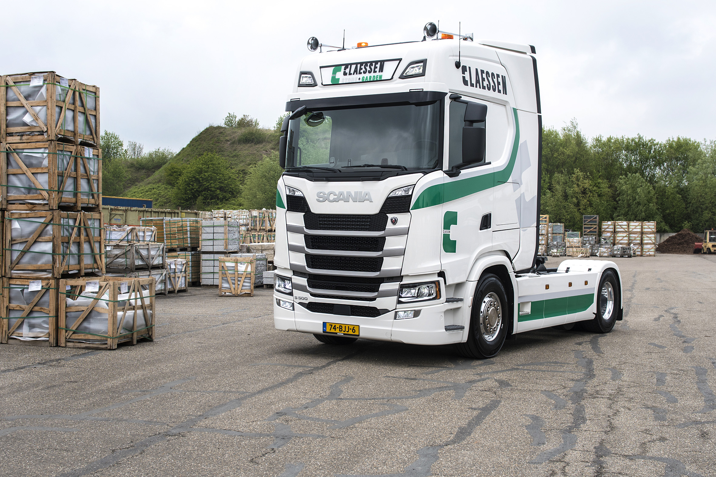 Claessen levert vooral natuursteen, keramische terrastegels, graszoden en tuinproducten aan groothandels. “Wij hebben vijf auto’s rijden, drie trekkers en twee bakwagens.”  Directeur Sven Claessen, die de afgelopen 17 jaar louter Scania vrachtwagens aanschafte, koos heel bewust dit specifieke type. ,,Ik wilde de nieuwe 500 pk SCR-only motor omdat het vervoer van steen en graszoden zwaar is en wij daar tot mee in Zwitserland en Oostenrijk rijden. Dan kun je wel wat trekkracht gebruiken op de helling. Vanwege diezelfde hellingen heb ik er ook de nieuwe vrijloopretarder op laten zetten. Maar de meeste lading nemen wij natuurlijk binnen Nederland mee. Daarvoor heb ik die derde as nodig. Want ondanks het feit dat wij met een Kooiaap achterop rijden, dreigt ook bij ons het gevaar dat we anders met deellading de trekas overbelasten.’’