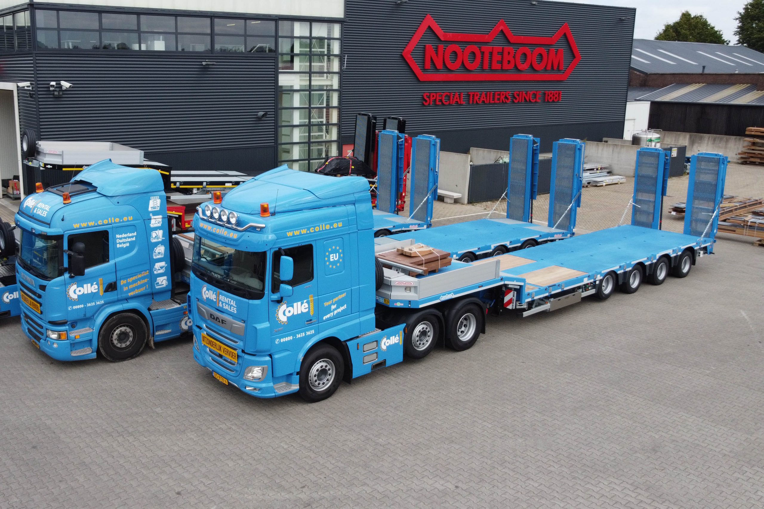 Via ingehuurde charters heeft Collé in de afgelopen jaren positieve feedback gehad over de Nooteboom semidiepladers, waardoor Collé heeft besloten deze order aan Nooteboom te gunnen. In totaal worden 20 stuks 3-assige semidiepladers (OSDS-48-03EB) en 6 stuks 4-assige semidiepladers met uitschuifbare laadvloer (OSDS-58-04V) geleverd. De semidiepladers zijn bestemd voor de diverse vestigingen van Collé in Europa. Inmiddels zijn de eerste semidiepladers aan Collé Rental afgeleverd.