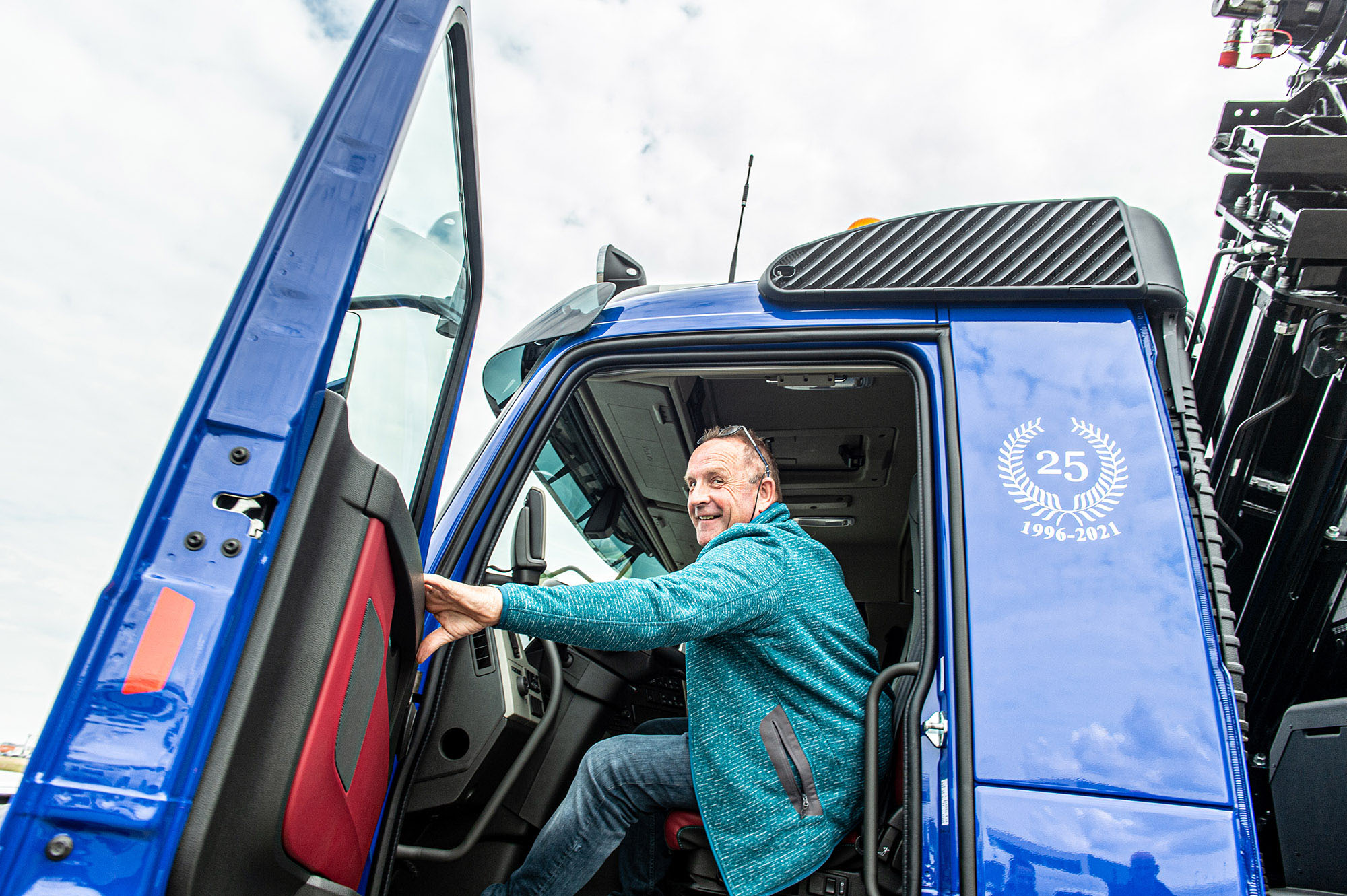 Corstanje is zeer te spreken over zijn nieuwe truck, die is voorzien van bijzondere signing. Op de cabine staat een logo dat refereert aan het 25-jarig bestaan en de tekst ‘D’n Lesten’. Corstanje: “Dat is Zeeuws voor ‘de laatste’. Gezien mijn leeftijd is dit waarschijnlijk mijn laatste truck.”