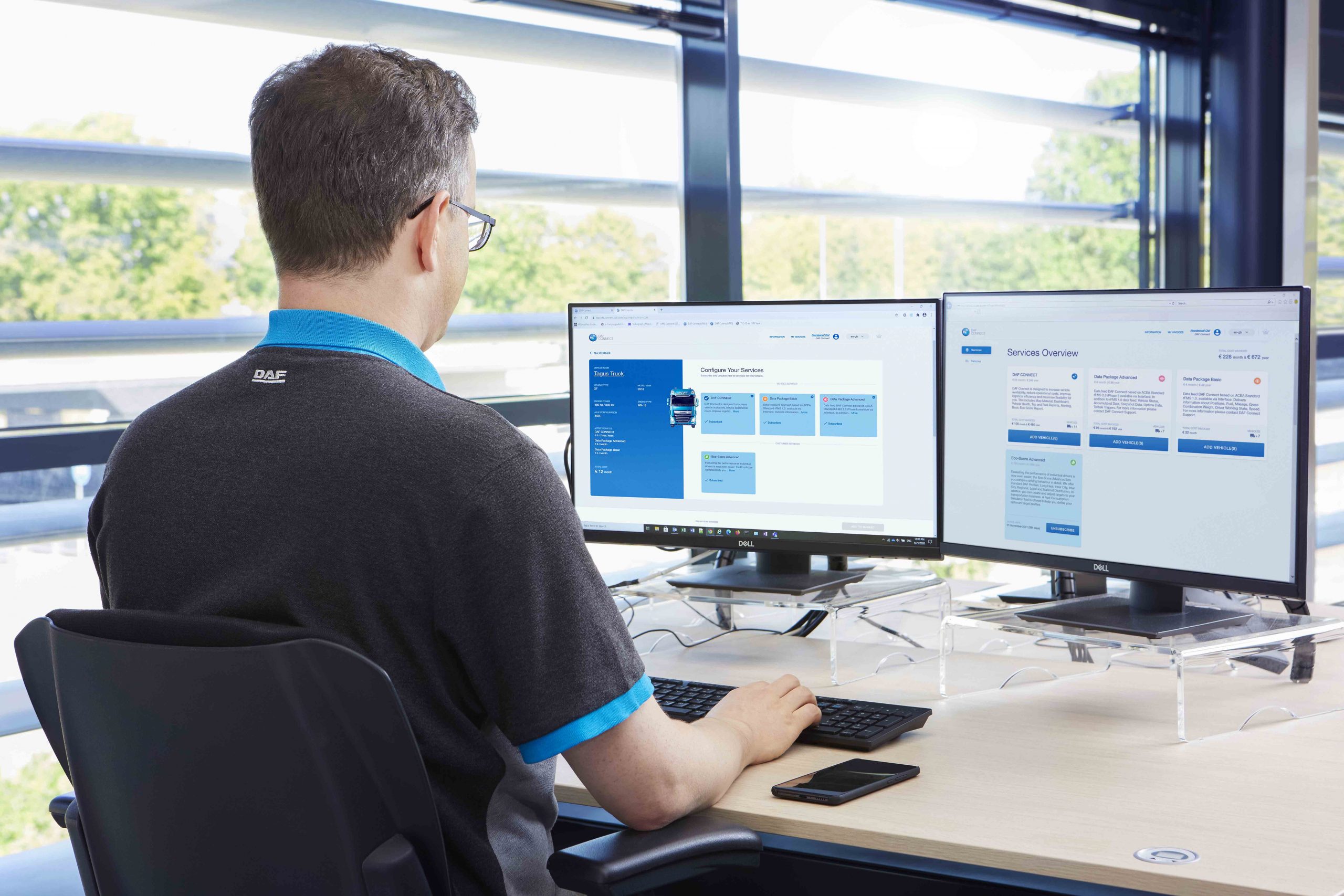 Steeds meer trucks die bij DAF van de productielijn komen, zijn uitgerust met het online fleet management platform DAF Connect. Deze gebruiksvriendelijke tool geeft altijd en overal inzicht in de prestaties van trucks, chauffeurs en logistieke processen. Die informatie helpt de inzet van voertuigen te verhogen, de operationele kosten te verlagen en een optimale efficiëntie te bereiken.