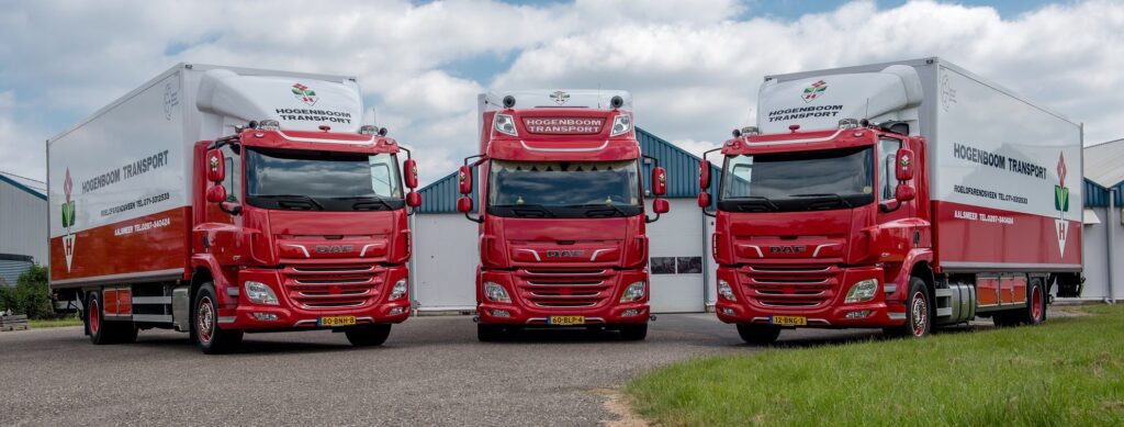 Distributie van bloemen en planten betekent rijden tussen kwekers, veilingen en afnemers. Dat vereist een strakke planning en betrouwbare trucks. Chauffeurs stappen ook veelvuldig in en uit. Een makkelijke instap wordt dan gewaardeerd. Andere factoren zijn het fijne rijgedrag, de probleemloze regeneratie van de uitlaatgasreiniging en de goed geregelde service bij DAF. Daarom zijn bij Hogenboom Transport in Roelofarendsveen in de afgelopen maanden acht nieuwe DAF’s CF ingezet, stuk voor stuk geleverd door dealer BLOM-DSW.