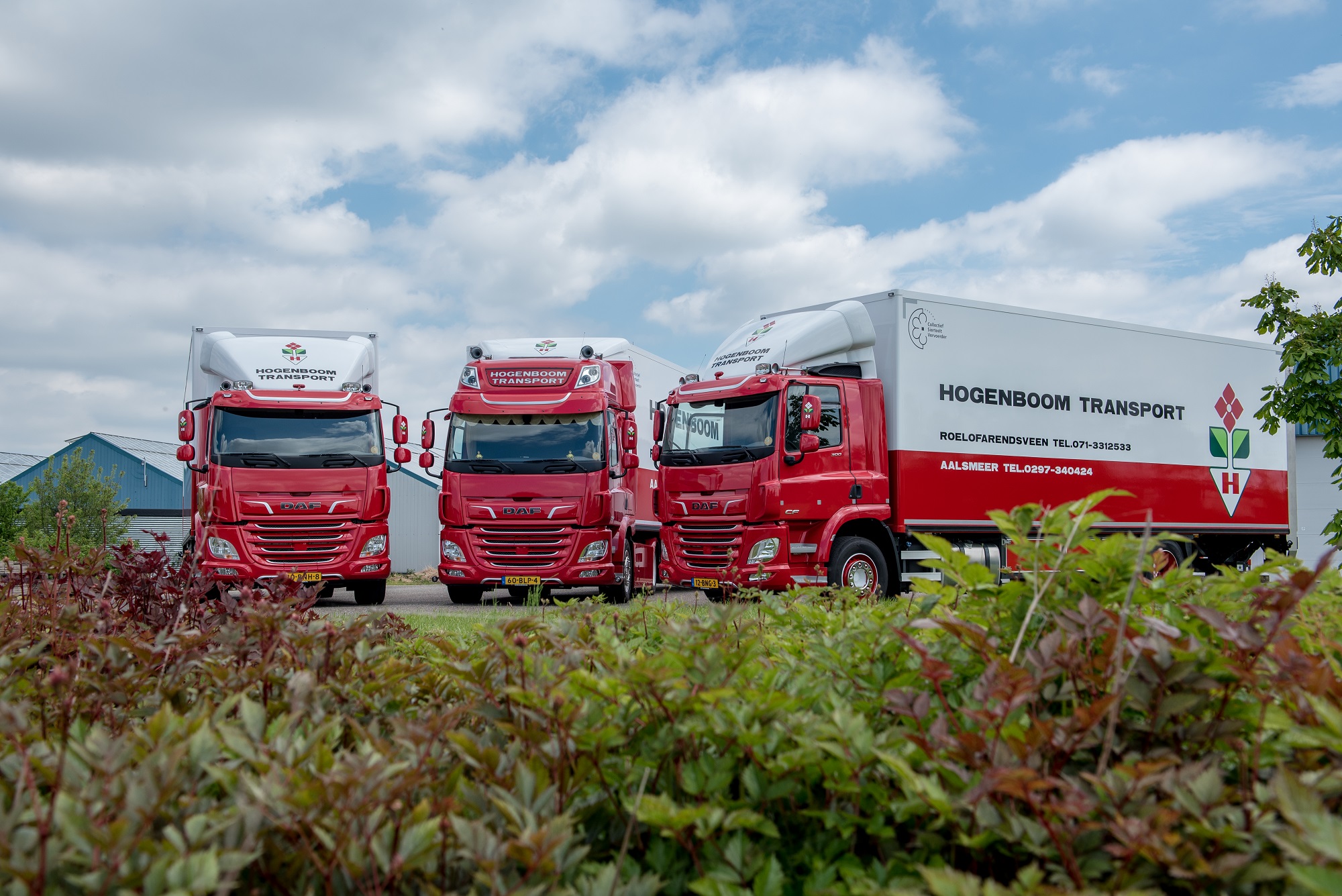 Hogenboom Transport draait al wat jaren mee. Het transportbedrijf is opgericht in 1925 en inmiddels is de leiding van dit familiebedrijf in handen van de derde generatie. Het bedrijf zit in de sierteelt: het transport van bloemen en planten. “Je vindt ons vaak bij de veilingen in Rijnsburg, Aalsmeer en Naaldwijk. Met vracht naar de veiling van de kwekers en in een strak tijdsschema letterlijk op slag van de veilingklok met zoveel mogelijk volle vracht naar tal van afnemers, zoals tuincentra. We zijn er zeer bedreven in en dat geldt ook voor de chauffeurs. We hebben een wagenpark van zestien bakwagens en zeven trekkers met trailer. Per jaar leggen de bakwagens tussen de 40 en 45 duizend kilometer af en de trekker wat meer, rond de 60 duizend kilometer.”
