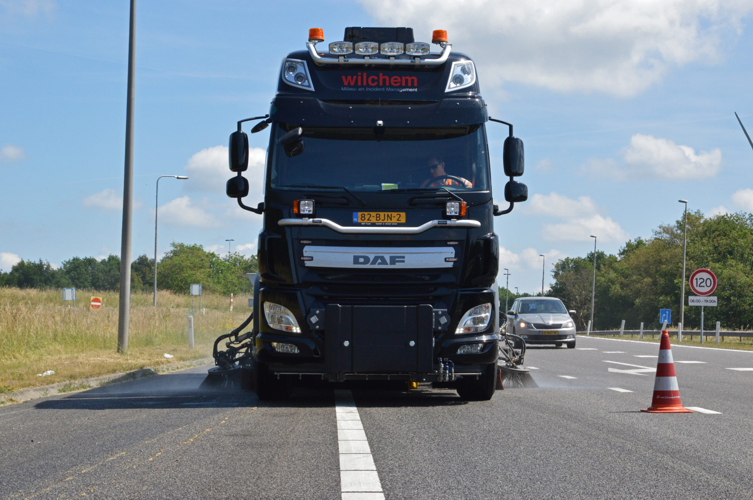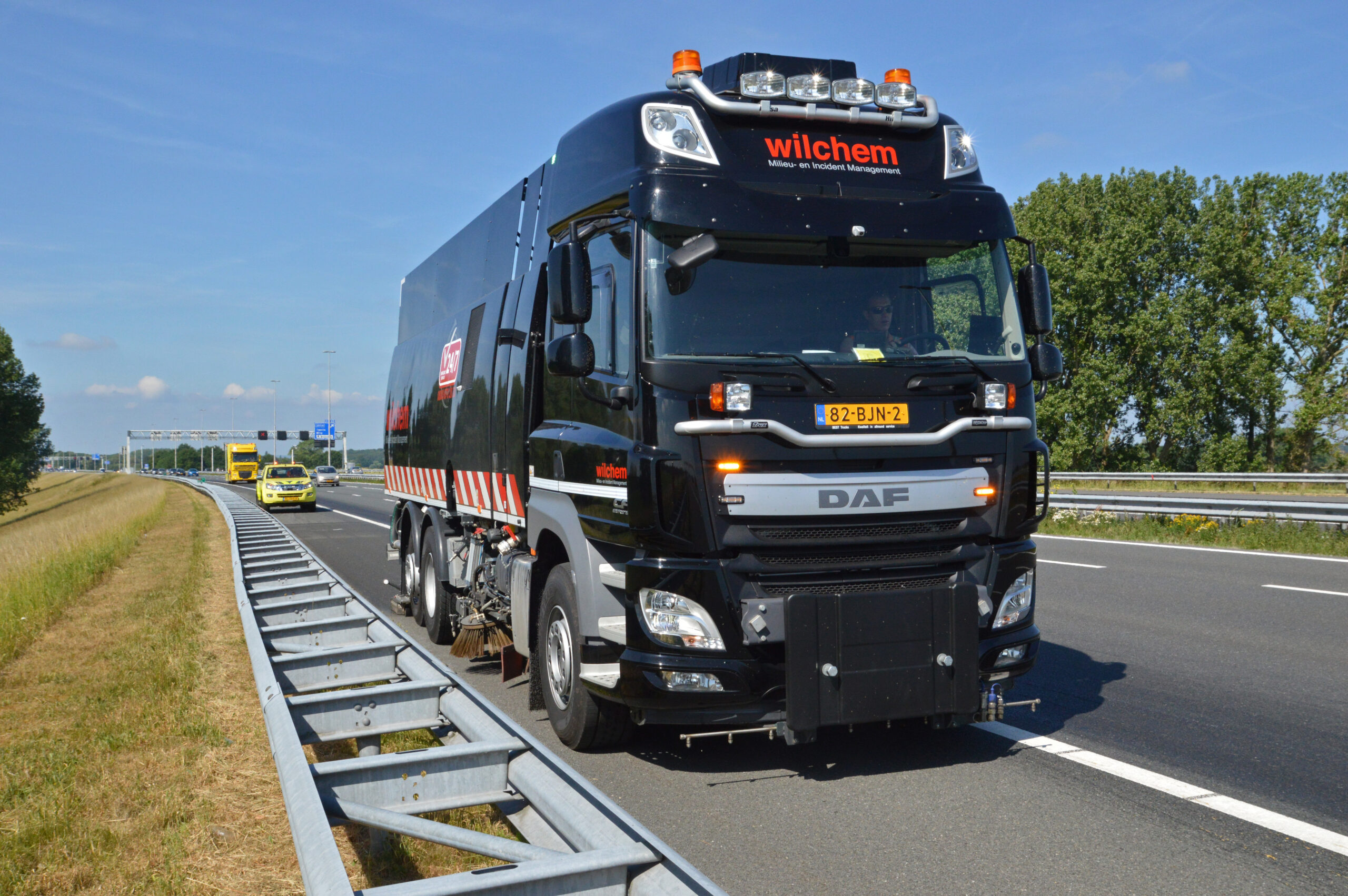 24 uur per dag en zeven dagen per week staat hij paraat: de nieuwe DAF CF 460 FAN van Wilchem B.V Milieu- en Incidentmanagement in Papendrecht. Klaar om uit te rukken om asfalt na een ongeval te ontdoen van olieachtige substanties.