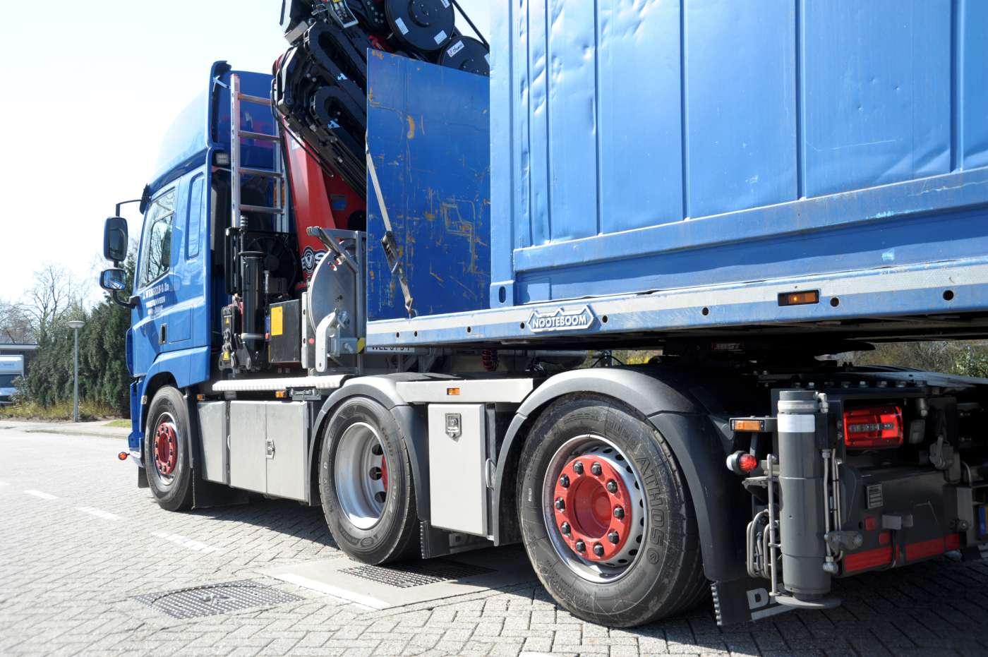 De DAF is door Veldhuizen Wagenbouw voorzien van een wide-spread as opstelling, waardoor de drie-assige trekker een totaal GVW van 31,5 ton kreeg. Dit is niet alleen het gevolg van het naar achteren plaatsen van de gestuurde naloopas. Ook de vooras werd opgewaardeerd tot 10 ton. Daarmee volstaat het compacte DAF-chassis voor deze toepassing. Het alternatief was een vierasser, maar zo’n voertuig is altijd langer, zwaarder en duurder.