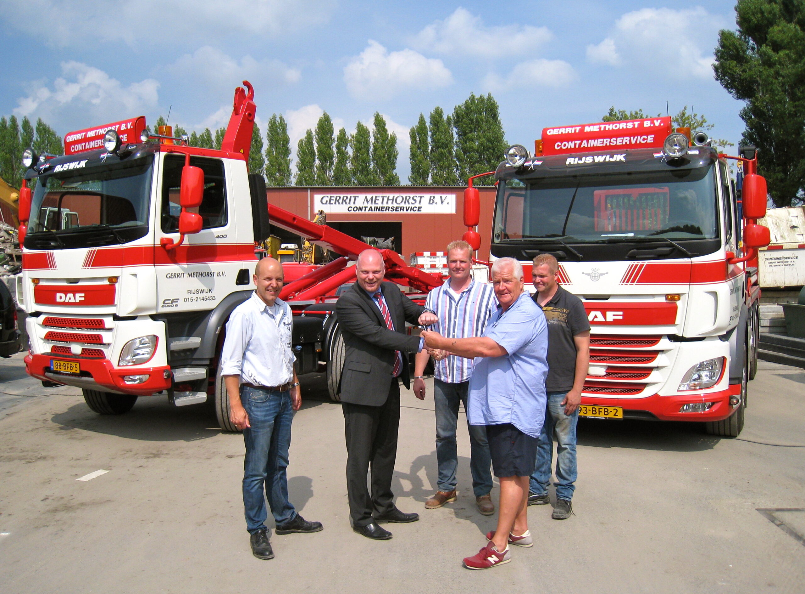 Het was een echte familieaangelegenheid, de overhandiging van de nieuwe DAF CF bakwagens aan Gerrit Methorst sloop en container transport. Vader Gerrit en de zonen Jim en Remco kregen de sleutels overhandigd door Jos Braakman, verkoper bij BLOM-DSW. De DAF’s worden vooral ingezet voor het inzamelen van afval en containertransport in de provincies Zuid- en Noord-Holland en Utrecht.
