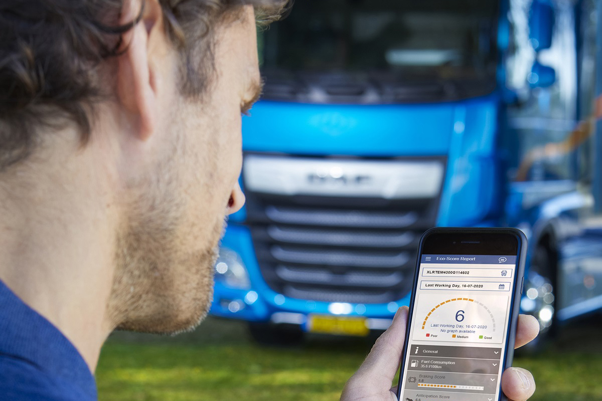 De nieuwe DAF Connect App coacht chauffeurs onder meer op hun brandstofverbruik.
