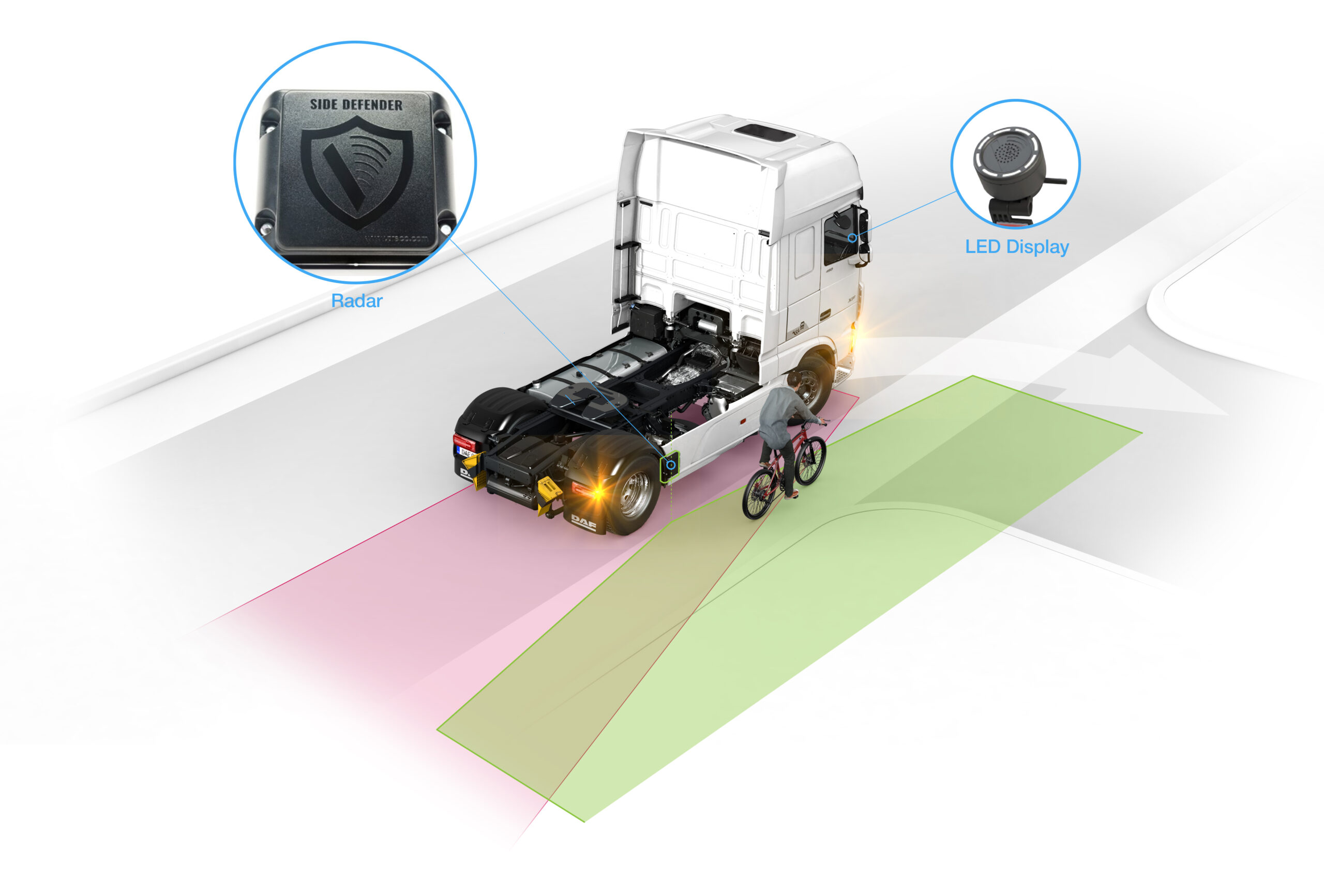 Voor de optimale detectie van andere verkeersdeelnemers maakt de DAF City Turn Assist gebruik van radartechnologie. Dat werkt óók bij slecht zicht. De enkele radarunit is op of bij het achterspatbord aan bijrijderszijde gemonteerd. Het ontwerp is zo robuust dat het onder zelfs de zwaarste omstandigheden blijft werken.