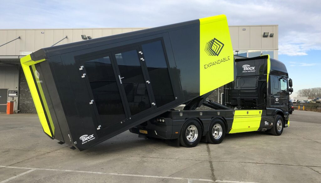 De Expandable unit is, eenmaal op de grond geplaatst, te verbreden naar 4,8 meter. De werkplaats biedt dan een oppervlakte van 40 vierkante meter aan stof- en regenvrije werkruimte, inclusief airconditioning en verwarming. “De meeste teams werken met tenten. Bij Becx Competition vinden we dit een betere oplossing. Je moet er toch niet aan denken dat je in een zandstorm in een tentje een versnellingsbak uit elkaar gaat halen. De werkplaats is ingericht met hefbrug, perslucht, elektra en goede verlichting, ook aan de onderkant. De monteurs kunnen zo hun werk optimaal uitvoeren. Een generator, die is gemonteerd door De Burgh, levert de stroom.”