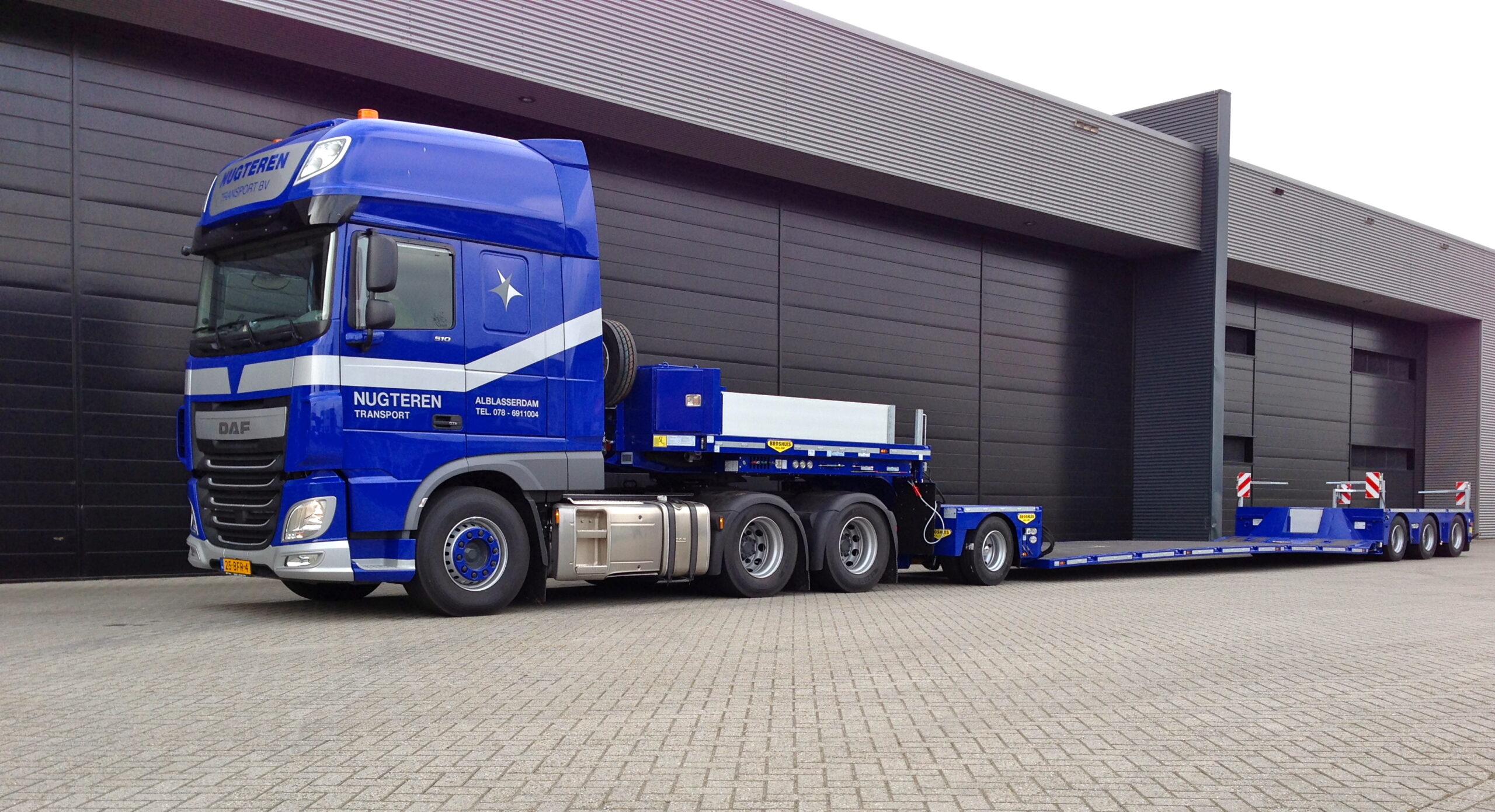 Naast de nieuwe DAF heeft Nugteren Transport ook een speciale dieplader in gebruik genomen die voorzien is van twee verschillende vloeren waarvan één laadvloer met een hoogte van 20 cm en een lengte van 9 meter en één laadvloer met een hoogte van 32 cm en uitschuifbaar tot 13,5 meter.