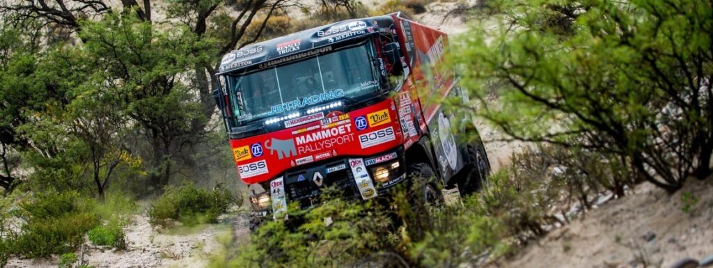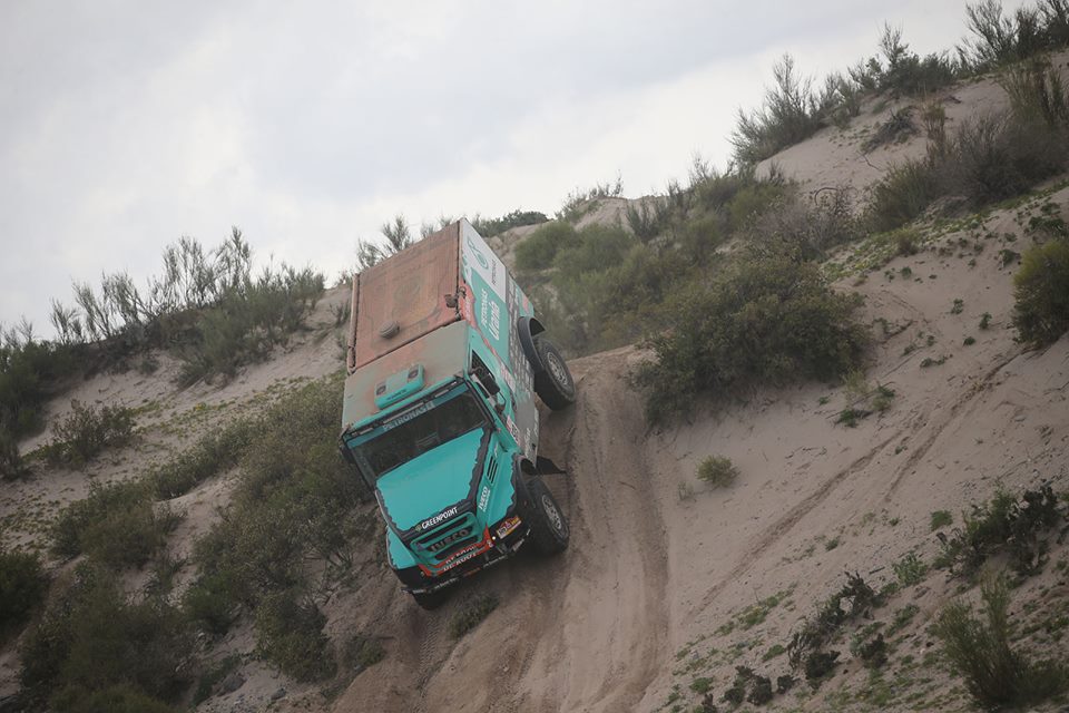 Er gebeurde veel in de 373 kilometer tellende proef tussen Salta en Belén. Motorrijders raakten de weg kwijt, auto’s gingen kapot en ook bij de trucks waren er grote verschuivingen. Al vroeg in de etappe zag Van Genugten, die als zesde startte, twee Kamazzen met lekke banden staan. En even later ook de derde. ,,Ik ben heel voorzichtig over de stenen gereden om niet ook lek te rijden. Maar ik heb daarna wel het gas erop gezet. Uit strategisch oogpunt wilde ik eigenlijk niet winnen, maar ik ga ook niet wachten op die Kamazzen. Als ik dan toch tijd kan pakken, doe ik het.”
