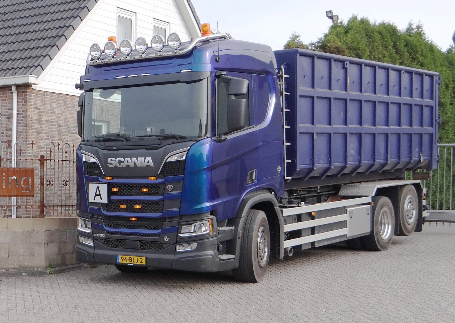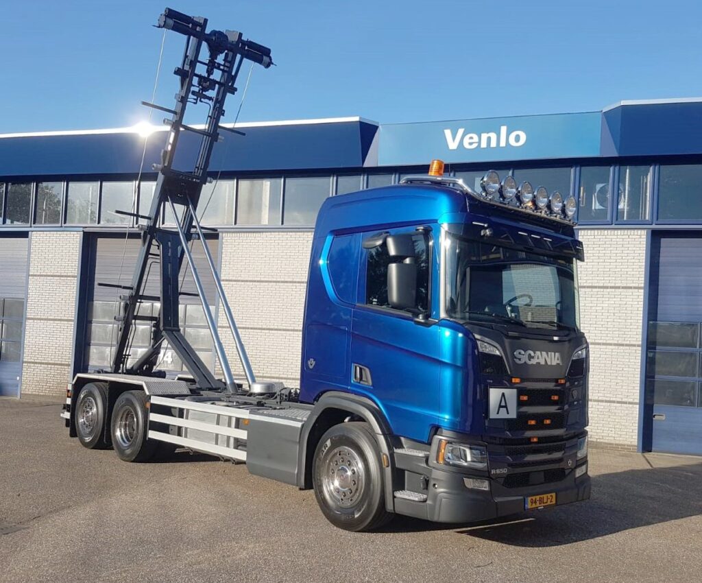 Met de aankoop van een stoere R650 V8 als 6×2 met hef- en stuurbare naloopas voegt Daniels Recycling uit Tegelen een nieuw paradepaard toe aan de vloot van momenteel zes Scania voertuigen. De auto, die gebruikt wordt in het afzetcontainertransport is voorzien van een 25 tons kabelsysteem van HTS/NCH. Zoals het een vlaggenschip betaamt, is de auto verder uitgerust met alle mogelijke luxe.