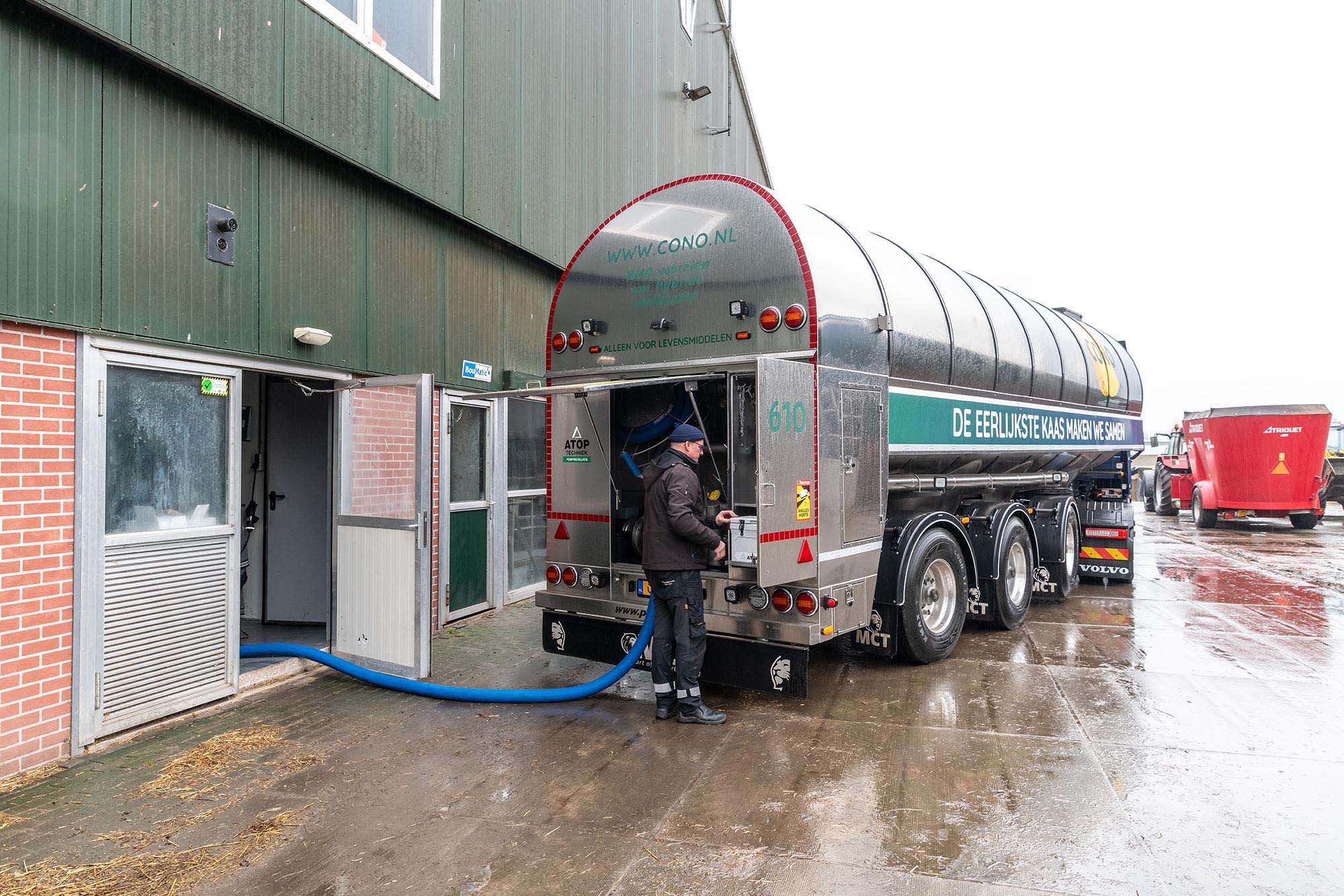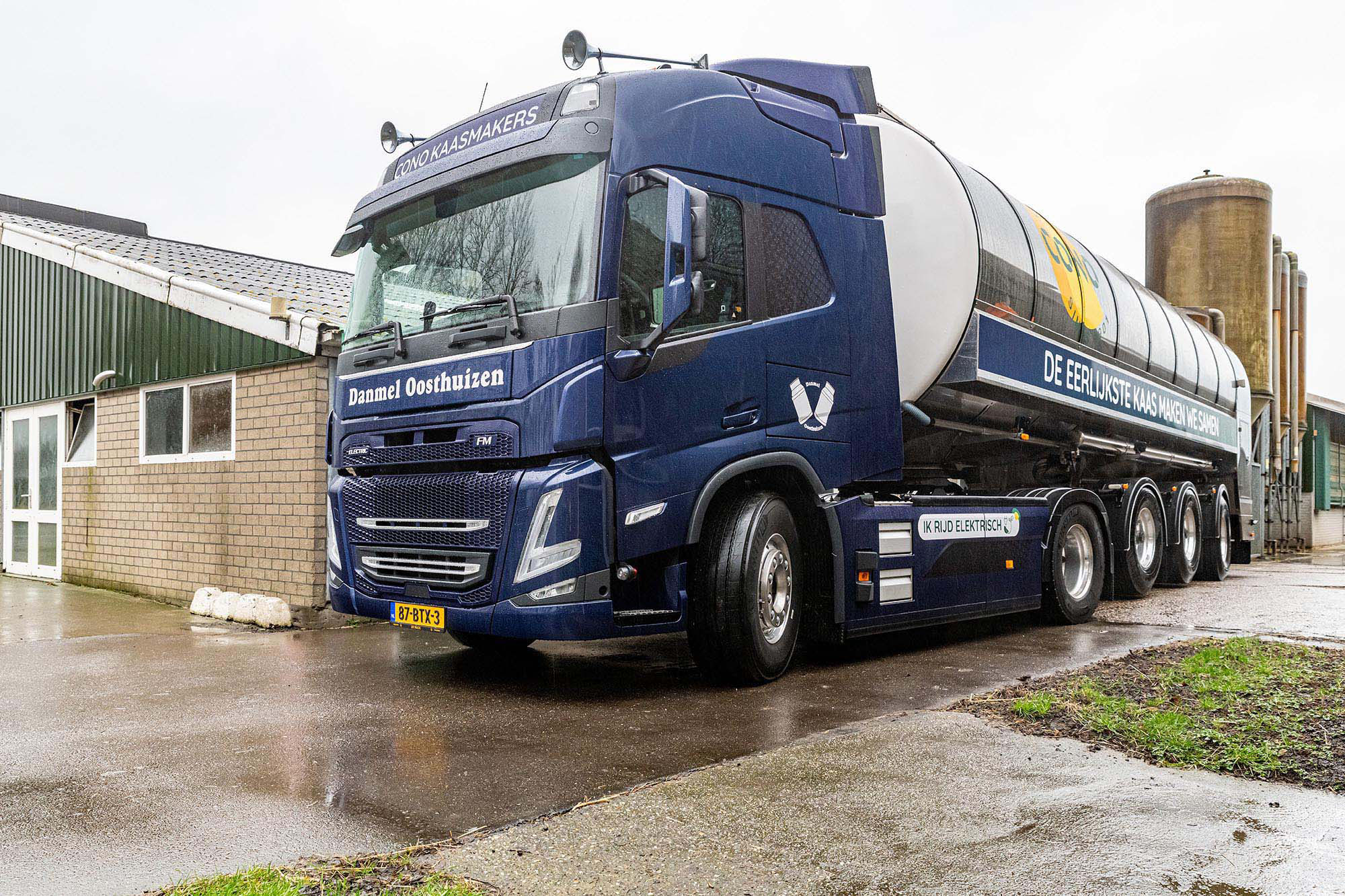 Danmel Transport rijdt voornamelijk in opdracht van CONO Kaasmakers. “Wij vervoeren melk van de boer naar de kaasmakerij in Westbeemster”, zegt Mart de Waard, eigenaar van Danmel Transport. Boerencoöperatie CONO Kaasmakers zet sterk in op duurzaamheid en wil samen met haar melk- en kaastransporteurs de footprint van kaas verkleinen. De ambitie: een klimaatpositieve kaasketen in 2030. Dat betekent dat er meer CO2 uit de lucht wordt gehaald en vastgelegd dan dat er wordt uitgestoten. Daarbij is een belangrijke rol weggelegd voor transporteurs.
