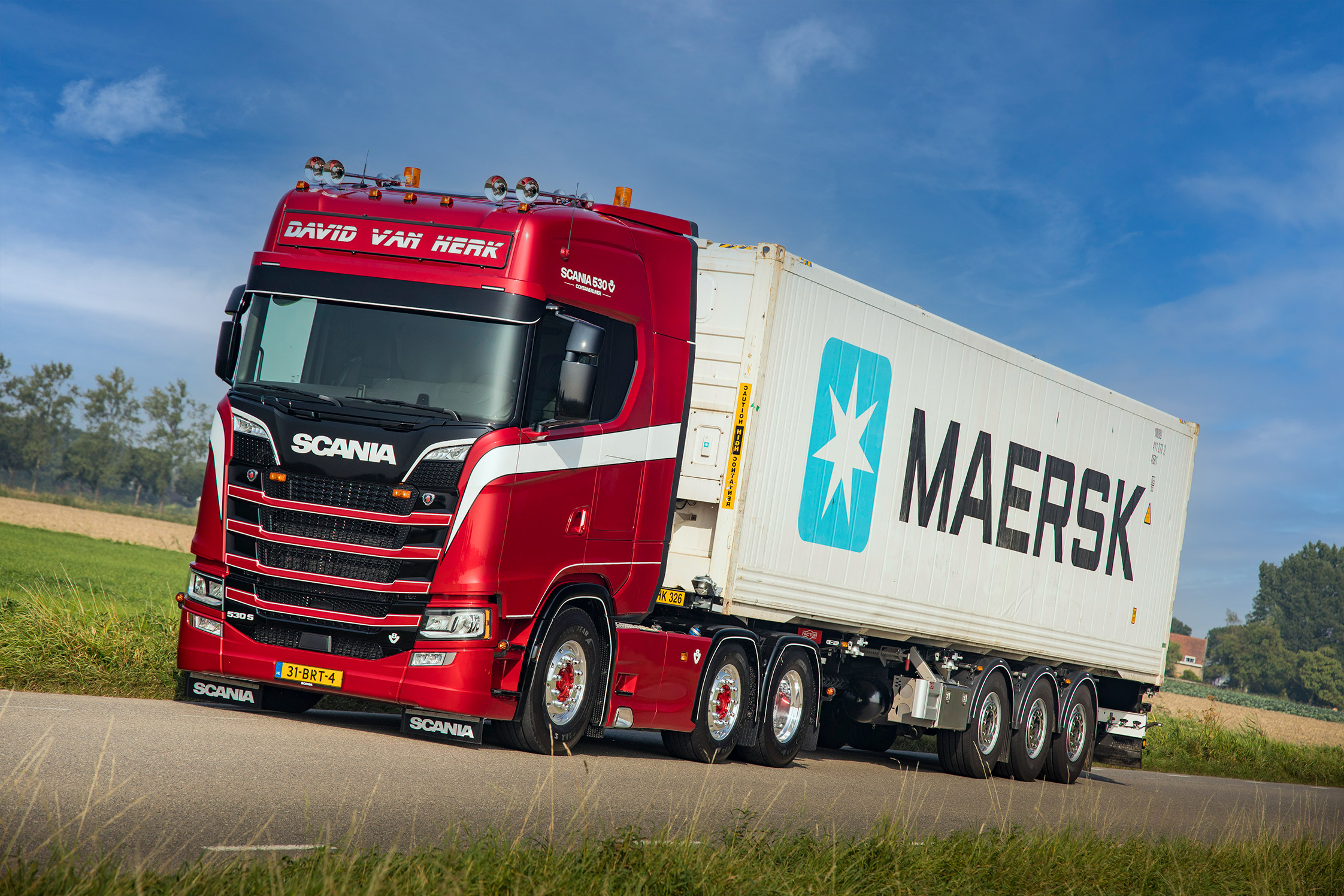 Dat heeft er alles mee te maken dat David eerst nog een aantal jaren zelf wil rijden voor hij zich meer op de overname van de zaak van zijn vader richt. “Daar had ik nu ook al mee kunnen beginnen en dat gaat op termijn mogelijk wel gebeuren. Maar ik ben net 22, dus ik voel er nog helemaal niets voor om de hele dag binnen naar een beeldscherm te gaan staren en mij met de planning van mijn vaders auto’s en alle charters bezig te houden. Plus alles wat daar nog omheen zit. Ik wil eerst lekker de baan op. Van alles meemaken en veel zien. Zodat ik ruim ervaring heb met alles wat de jongens buiten meemaken voor ik naar binnen ga. Dan weet ik écht waar ze het over hebben. Dus rijd ik nu voornamelijk voor het bedrijf van mijn vader. Daarnaast zit ik ook wel in het losgestort met aardappelen en uien. Maar dat is uiteraard seizoensgebonden.”