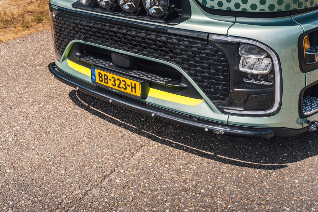 Direct toen de eerste ProCabin arriveerde bij de nieuwbouwafdeling van Louwman Mercedes-Benz in Roosendaal, begon de metamorfose. Carbouw Louwman zorgde voor de unieke achterbumper, het lichtgevende logo en meegespoten delen. Verder zijn allerlei details rondom donker gemaakt en is bestickering aangebracht door Van Strien Print & Sign. Een stoere match met de introductiekleur Kristalgroen Metallic. In diezelfde dark-look stijl zijn rondom LightFix beugels bevestigd.