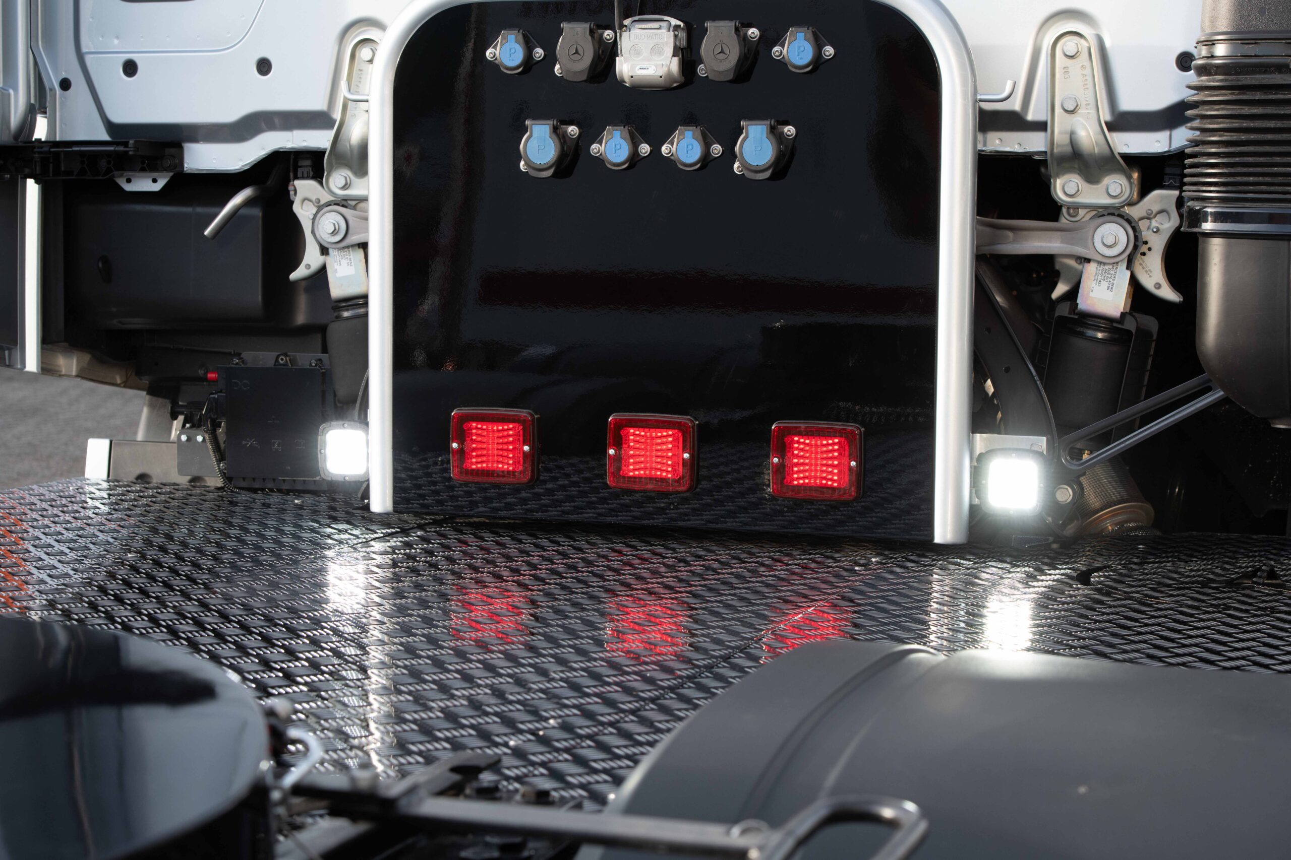 De Actros 2563 LS 6×2/4 die als basis is gebruikt, is de afgelopen maanden verder opgebouwd. De Actros Powerliner is onder meer voorzien van een pneumatisch bedienbare, schuifbare koppelschotel. Daarmee kunnen opleggers van verschillende afmetingen aan de truck worden gekoppeld. Achter de cabine is een AdBlue tank gebouwd, daardoor is deze voorloopasser voorzien van een tweede dieseltank van 180 liter naast de grote tank van 680 liter. Het chassis is afgedekt met traanplaat en aan de achterste as is een Deense bumper gemonteerd. Voor extra veiligheid in de dode hoek is een CornerEye systeem opgebouwd.