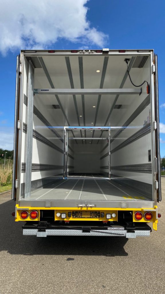 Op de zwaarste Volvo FH750 truck uitvoering heeft Heiwo een carrosserie geplaatst net 8.1 m lengte en 2.8 m inwendige hoogte, de achterdeuren zijn in harmonica uitvoering t.b.v. het doorladen. Heiwo monteert zelf de 50 mm pneumatische volume koppeling voor de middenas aanhangwagen. Voor het solo laden en/of lossen is er een D’hollandia volume laadklep gemonteerd. De carrosserie wordt op temperatuur gehouden door een Webasto warmwater kachel gemonteerd in een roestvrij stalen kist. In de vloer zijn 4 uitblaas openingen en de kokers hiervoor lopen door het hulpraam heen.