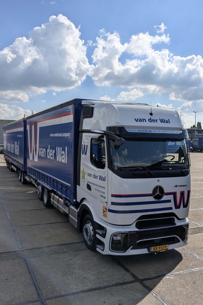 Bij Logistiek dienstverlener Van der Wal reed deze week de laatste uit een serie van dertien gloednieuwe Mercedes Benz Actros L ProCabin motorwagens het terrein op. In januari volgen bovendien twee elektrische eActros 600 trucks.
