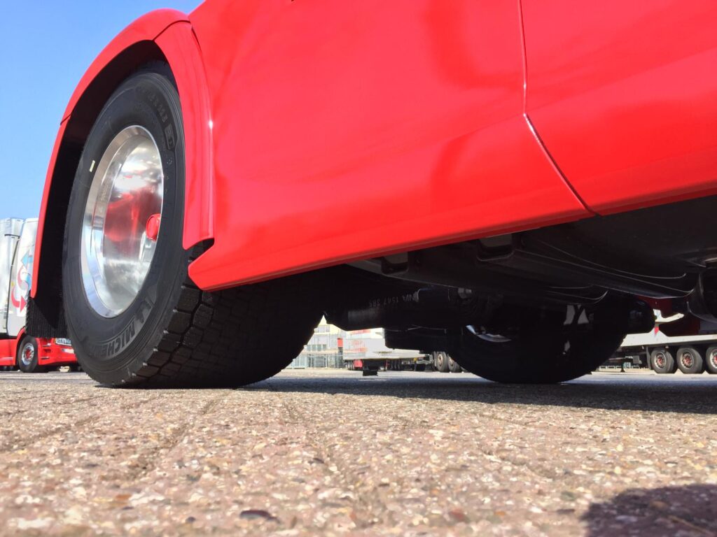 De dertigste maakte deel uit van een batch van twee nieuwe 4×2 trekkers. Zoals gewoonlijk zijn deze trekkers wederom voorzien van alle luxe die een chauffeur zich mag wensen. Op de achterassen is echter iets bijzonders te zien. In opdracht van de klant is bij beide voertuigen de achteras voorzien van een enkele band, de Michelin X-one 495/45 R22.5. Hierdoor zijn de trekkers nóg zuiniger in combinatie met de al zuinige 450pk SCR-only motor.