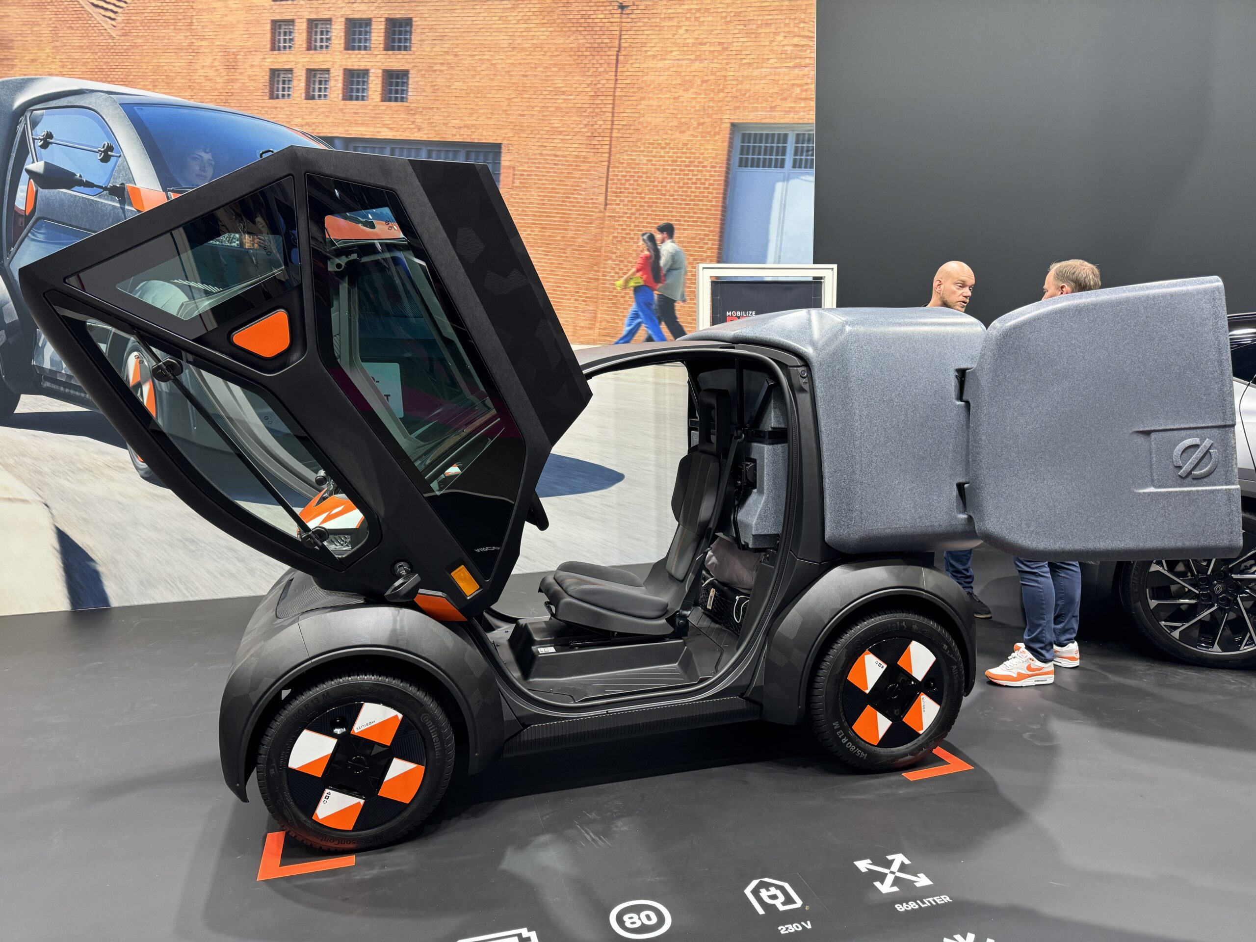 Deze stond op de stand van Renault en heeft dan ook veel gelijkenis met de Twizy, het kekke stadsautootje dat Renault in 2012 op de markt bracht. De Bento beschikt over een klein laadbakje met een inhoud van 868 liter en komt 149 kilometer ver op één acculading. De topsnelheid is beperkt tot 80 km/u.