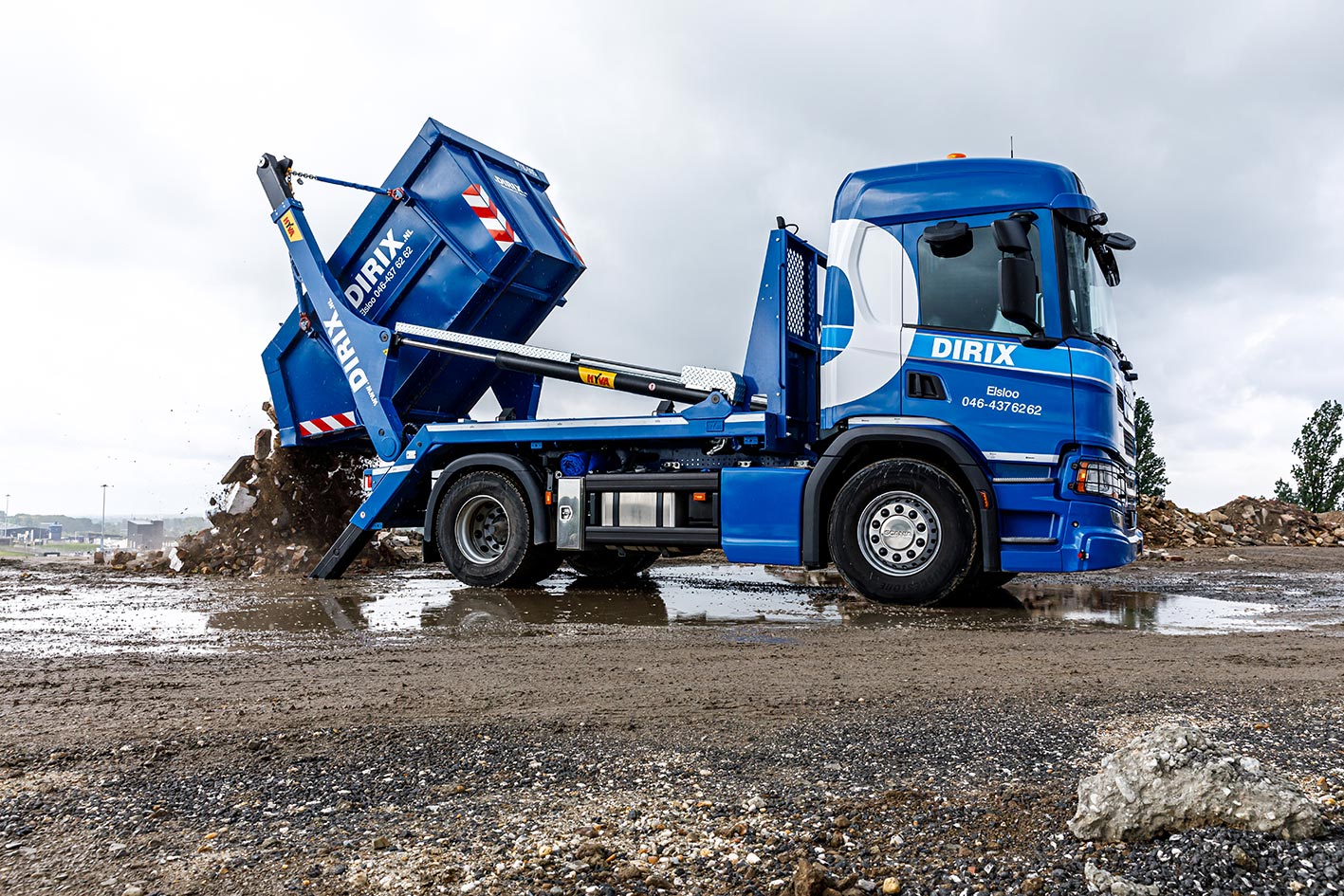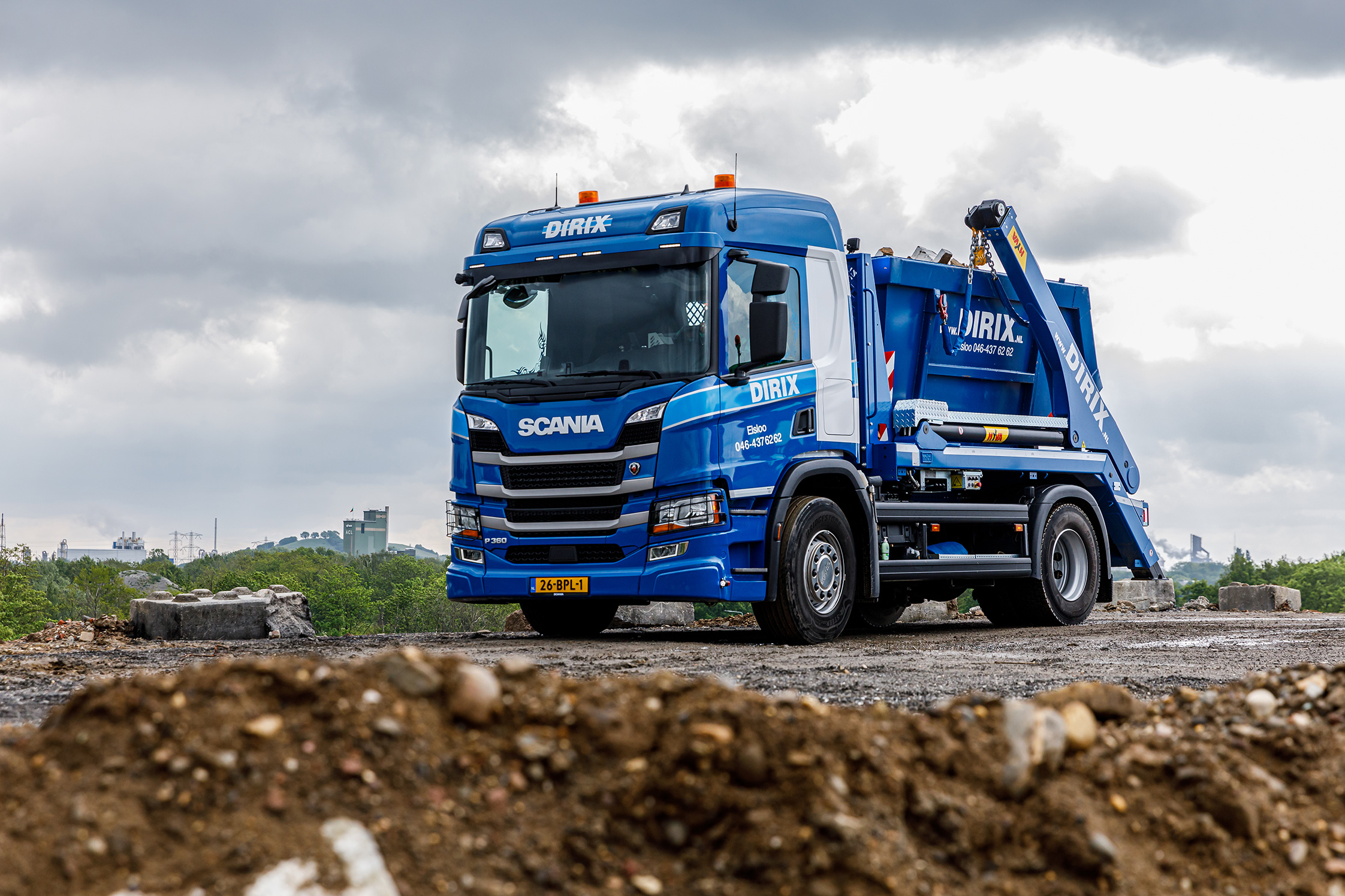 Recyclingspecialist Dirix uit het Limburgse Elsloo rijdt sinds deze maand met een nieuwe Scania P360 portaaltruck met een verlengde dagcabine. De truck met een 10-tons vooras wordt niet alleen ingezet om containerbakken bij klanten neer te zetten en op te halen. “Voor aannemers brengen en halen we ook veel ‘huisjes’. Dat zijn gesloten afvalbakken waar de bouwers hun sloopmateriaal in doen”, vertelt directeur Tim Dirix.