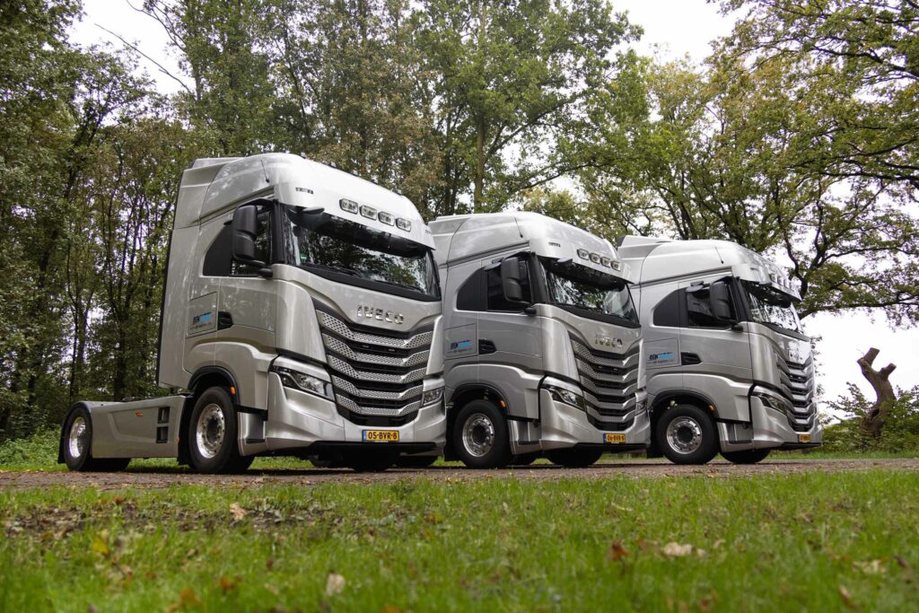 Het totale wagenpark van DJK bestaat uit 60 voertuigen. Het bedrijf werkt met 20 vaste charters en 40 eigen auto’s, waarvan inmiddels 9 Iveco S-Way’s in de vloot zijn opgenomen. Kelly geeft aan dat vrijwel alle chauffeurs vooroordelen over Iveco hadden. “Ga er maar eens een week mee op pad”, opperde hij daarom. En wat bleek, enthousiast kwamen ze terug. Zo kwam het dat de vijf diesel trucks die aan vervanging toe waren, wederom Iveco S-Way trucks werden. In 2021 leverde Iveco de eerste vier LNG-trekkers en daar zijn nu vijf diesel-trekkers aan toegevoegd.