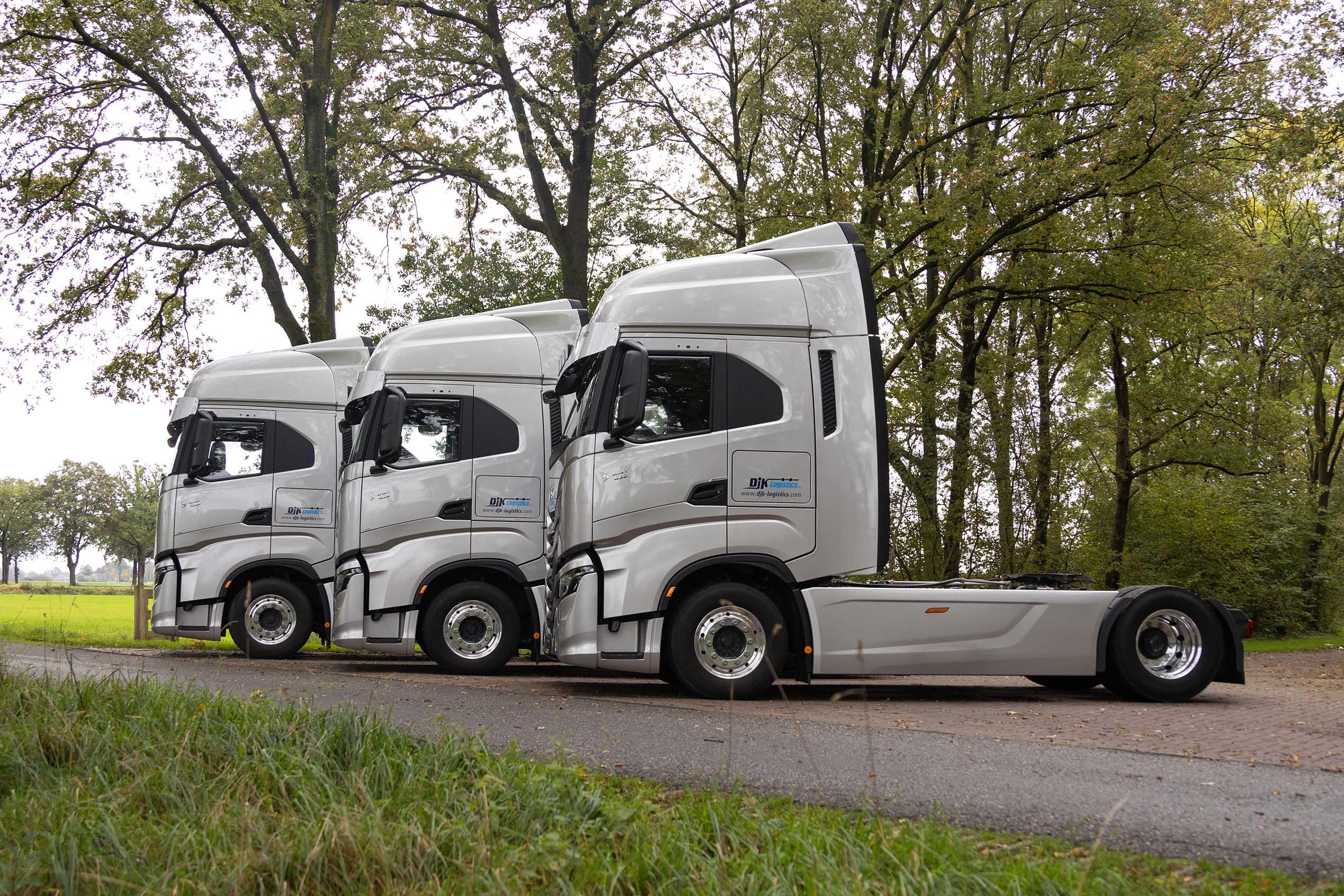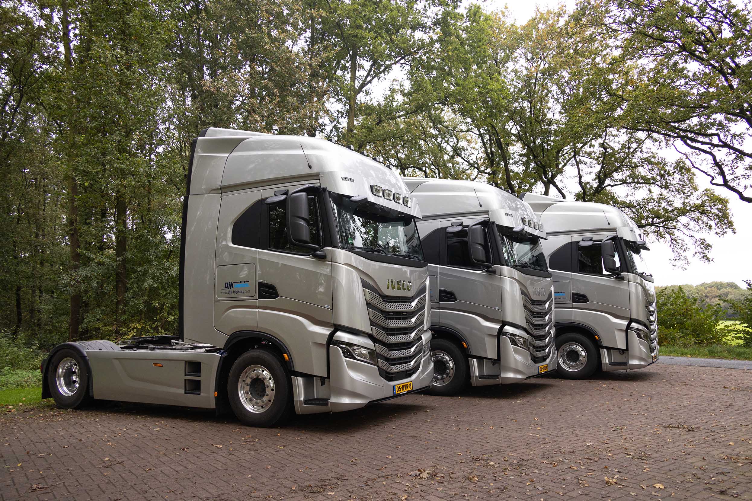 DJK heeft gekozen voor Iveco S-Way’s met een 490 pk Cursor 13 motor en de automatische Hi-Tronix 12 versnellingsbak. De auto’s zijn voorzien van hydroliek voor walkingfloor opleggers en zijn verder strak afgewerkt. De trucks hebben een speciale zonneklep en ook het interieur is volledig afgestemd op de internationale chauffeur. Met een standairco, standkachel, koelkast, lederen bestuurdersstoel, stoelverwarming en -ventilatie, dubbel bed, magnetron, koelkast, vriesvak en een omvormer voor het koppelen van bijvoorbeeld een laptop of koffieautomaat, ontbreekt het de chauffeur aan niets. Het Night Safety Lock systeem zorgt ervoor dat de bestuurder van de truck, waar dan ook, veilig en ongestoord de rust kan pakken en in de ruime cabine daadwerkelijk kan ontspannen.