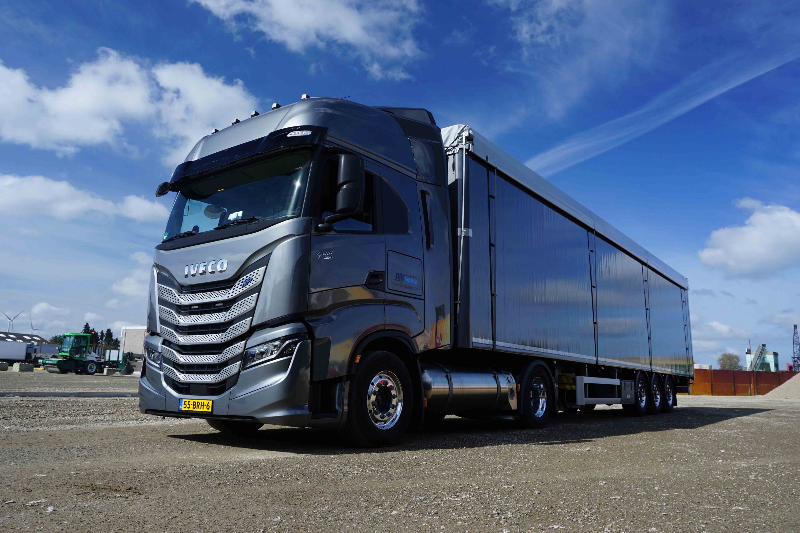 Het verkleinen van de CO₂-footprint was voor DJK Logistics een belangrijke reden om te kiezen voor Iveco-trucks op LNG. Daarnaast woog het in grote mate mee dat zij hiermee ondanks de walking-floor combinatie tóch een actieradius kunnen halen van circa 1.500 kilometer. Dit is mogelijk door een unieke oplossing, waarbij een RVS hydrauliektank met een inhoud van 120 liter middenin het chassis is weg gebouwd. Hierdoor is er ruimte voor twee LNG-tanks met een inhoud van 200 kilogram, waardoor er minder tankbeurten nodig zijn. Het PTO-systeem is uitgerust met een plunjer pomp die 110 liter levert bij 840 toeren en maximaal 250 bar.