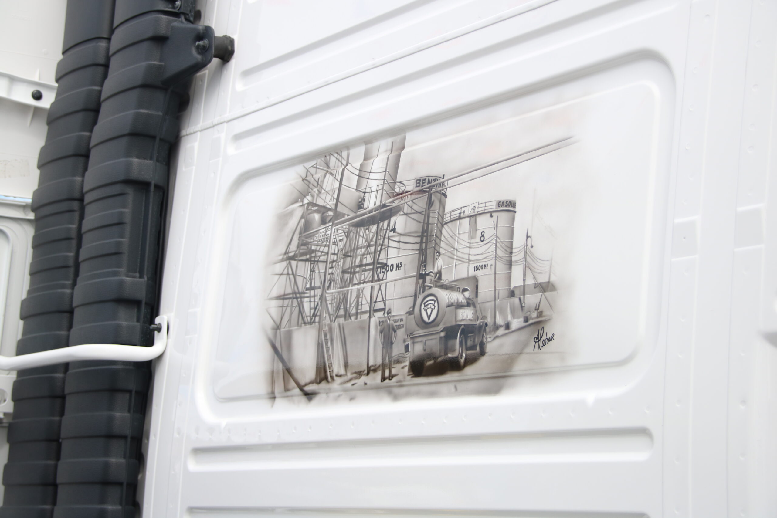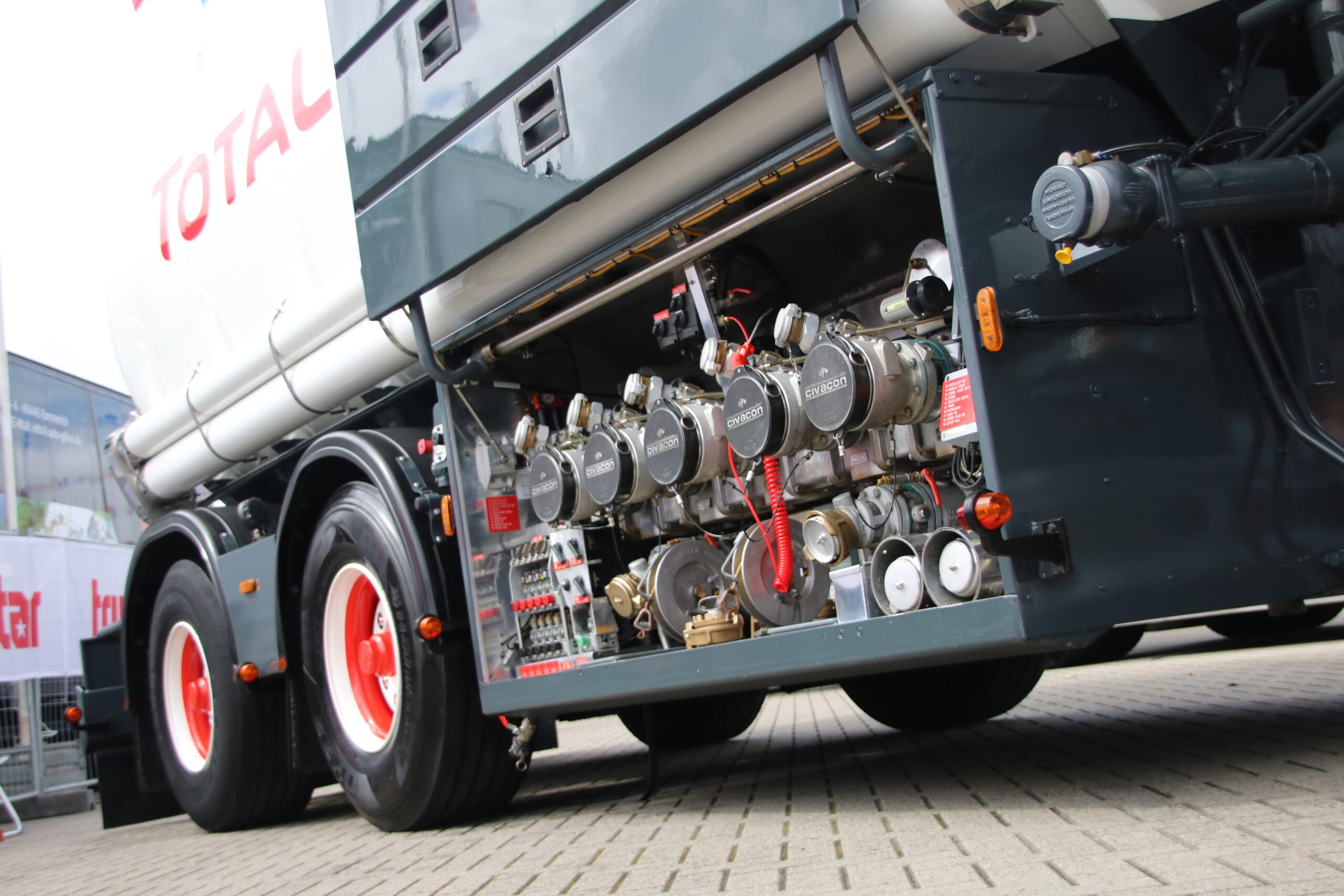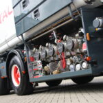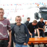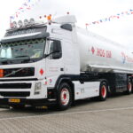 Johan Hoekstra en zijn maat Mark zitten echter rustig naast de truck van Johan, een Volvo FM 400 uit 2008. De dappere FM van HOS Oil strijdt in de categorie Bulk & Tanktransport tegen flink forsere deelnemers; de Kees in ’t Veen Tanktransport Mercedes Actros van Dennis Troost en de Meinders International BV Scania R620 van Remon Kies. “Deze combinatie is nu bijna 9 jaar oud en we hebben hem stapsgewijs zo opgebouwd. We zitten vast aan de reclame voorschriften van Total – zo is zelfs de RAL kleur van het chassis bepaald – maar met subtiele zaken als de kleur van de velgen of een special paint op de achterzijde van de cabine, hebben we de FM een eigen gezicht gegeven”.
