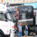 Johan is de derde generatie in het familiebedrijf Hoekstra Olie Service (HOS) en is dagelijks onderweg met de FM die nu zo’n 400.000 kilometers op de klok heeft staan. Vorig jaar stond hij op de Showstraat en dit jaar dus tussen de mooiste trucks van Nederland. Een hele eer! Datzelfde geldt voor Henk Mulder die even verderop al bezoek heeft van de jury van de Mooiste Truckverkiezing. Henk kreeg maar weinig tijd gegund om zijn DAF XF in showconditie te brengen – tot woensdagavond was hij gewoon in de weer met het vervoer van kalveren – maar zijn veecombinatie ziet er uit om door een ringetje te halen. Complimenten! Voor Johan, Henk en de overige deelnemers wordt het nog heel spannend tijdens de bekendmaking van de Mooiste Trucks van Nederland. Morgenochtend om half twaalf zal de jury zich uitspreken en weten we wie er met de felbegeerde titel van Moosite Truck van Nederland vandoor gaat!