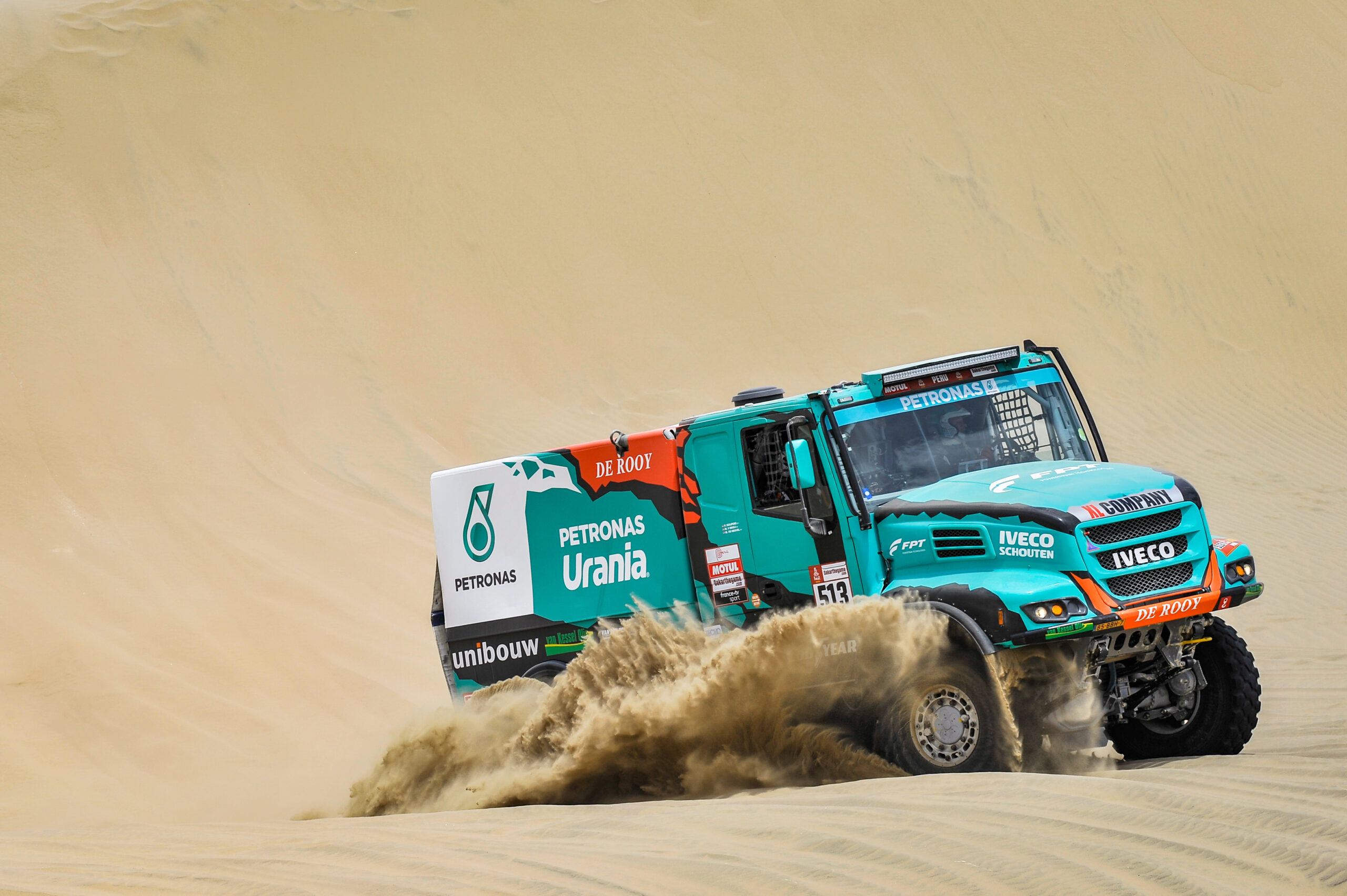 Ondertussen ligt favoriet Gerard de Rooy na twee dagen op plek twee in het klassement achter Nikolaev met zijn Kamaz. Ook Maurik van den Heuvel van Team De Rooy heeft de aansluiting met de kop gevonden. Dat belooft nog een mooie strijd de komende dagen in Zuid-Amerika.