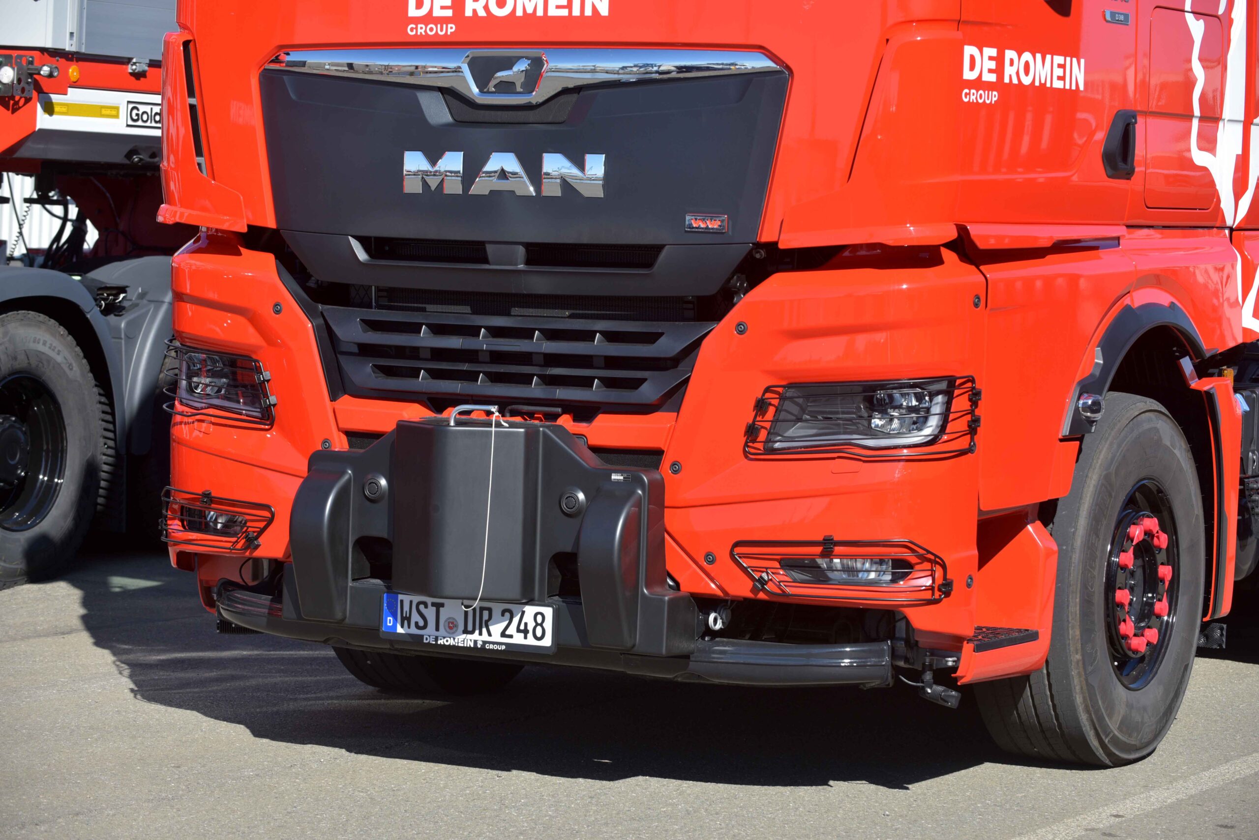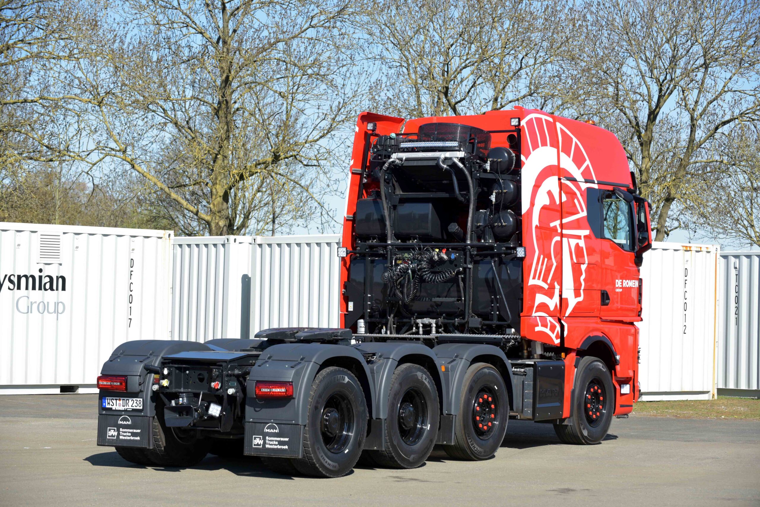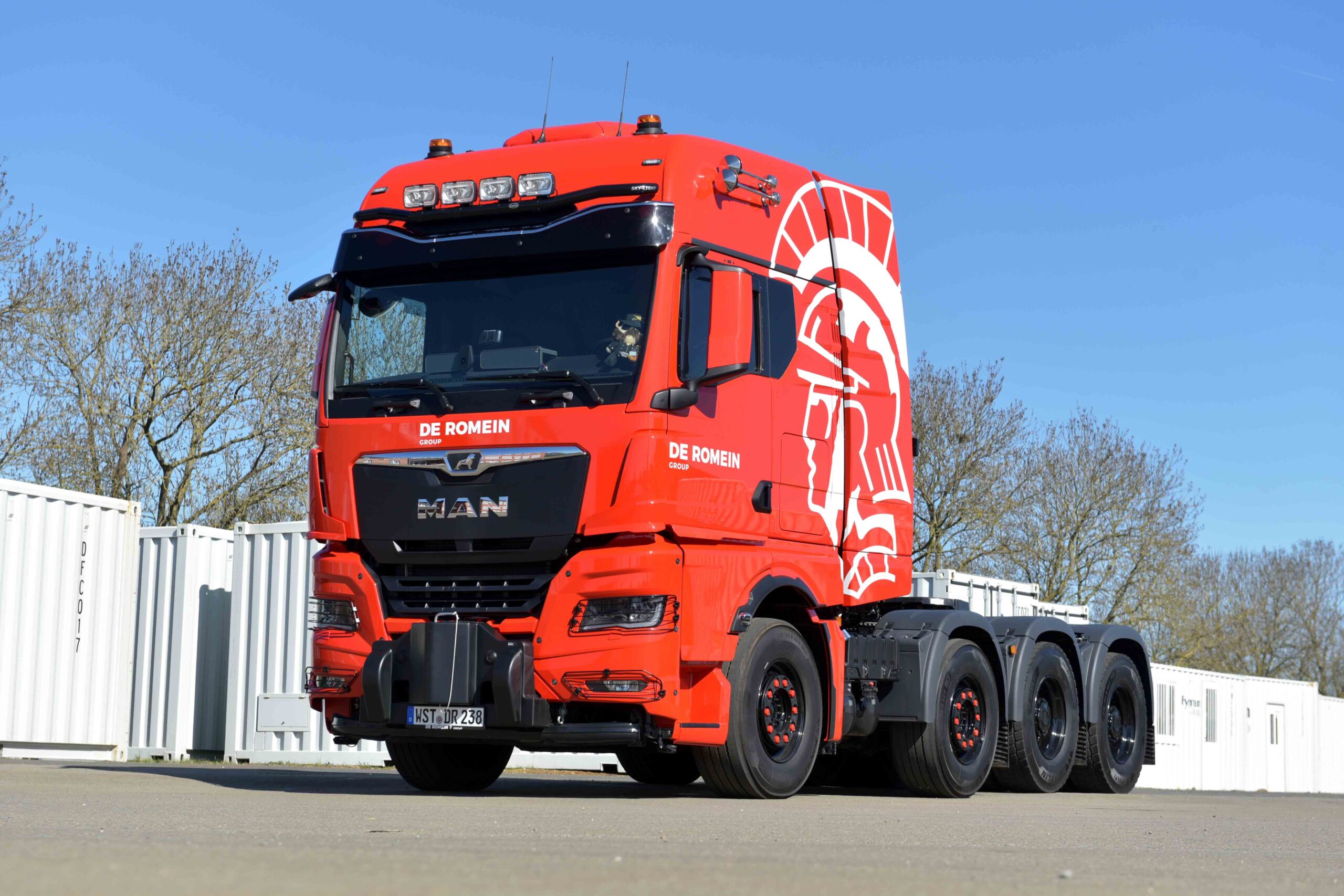 “MAN is de enige truckbouwer die een zwaartransporttrekker af-fabriek levert met WSK koppelomvormer. Voor ons was dat een belangrijk argument, want dan heb je één aanspreekpartner voor zo’n truck”, aldus Blokzijl. De trucks zijn door Wierda Bedrijfswagens aangepast aan de specifieke eisen van De Romein. Zo werd het rek achter de cabine aangepast en werden er speciale WVT zijfenders gemonteerd.
