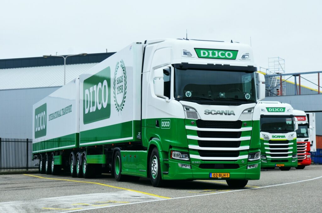 Dijco is al zestig jaar een begrip in het vervoer van groenten en fruit. Het bedrijf heeft onlangs drie nieuwe LZV’s combinaties met Carrier koelmotoren in gebruik genomen. De vervanging van enkele lange en zware voertuigcombinaties (LZV’s) was voor Dijco hét moment om met de inzet van nieuwe technieken zowel kostenbesparingen als CO2 reductie te realiseren. Voor de drie nieuwe LZV’s die Dijco in bedrijf heeft genomen, bleek Carrier diverse koelmachines aan te kunnen bieden die worden aangedreven door de voertuigmotor. “Extra voordeel is dat deze techniek meerdere koelmotoren tegelijk aan kan drijven. Dan realiseer je natuurlijk al snel een zeker kostenvoordeel. In feite koel je met restenergie, en dat leidt tot een mooie uitstootreductie”, zegt algemeen directeur Egbert van Alphen van Dijco.
