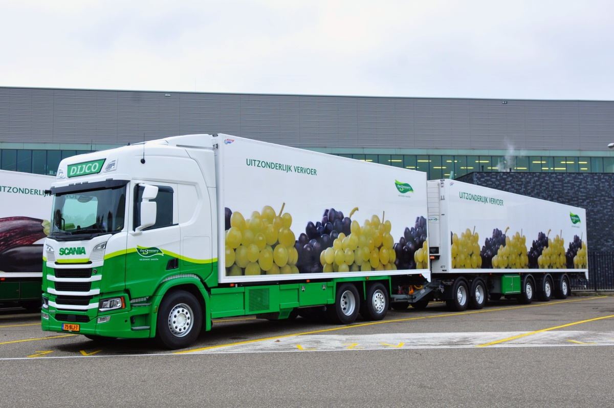 Dijco is al zestig jaar een begrip in het vervoer van groenten en fruit. Het bedrijf heeft onlangs drie nieuwe LZV’s combinaties met Carrier koelmotoren in gebruik genomen. De vervanging van enkele lange en zware voertuigcombinaties (LZV’s) was voor Dijco hét moment om met de inzet van nieuwe technieken zowel kostenbesparingen als CO2 reductie te realiseren. Voor de drie nieuwe LZV’s die Dijco in bedrijf heeft genomen, bleek Carrier diverse koelmachines aan te kunnen bieden die worden aangedreven door de voertuigmotor. “Extra voordeel is dat deze techniek meerdere koelmotoren tegelijk aan kan drijven. Dan realiseer je natuurlijk al snel een zeker kostenvoordeel. In feite koel je met restenergie, en dat leidt tot een mooie uitstootreductie”, zegt algemeen directeur Egbert van Alphen van Dijco.