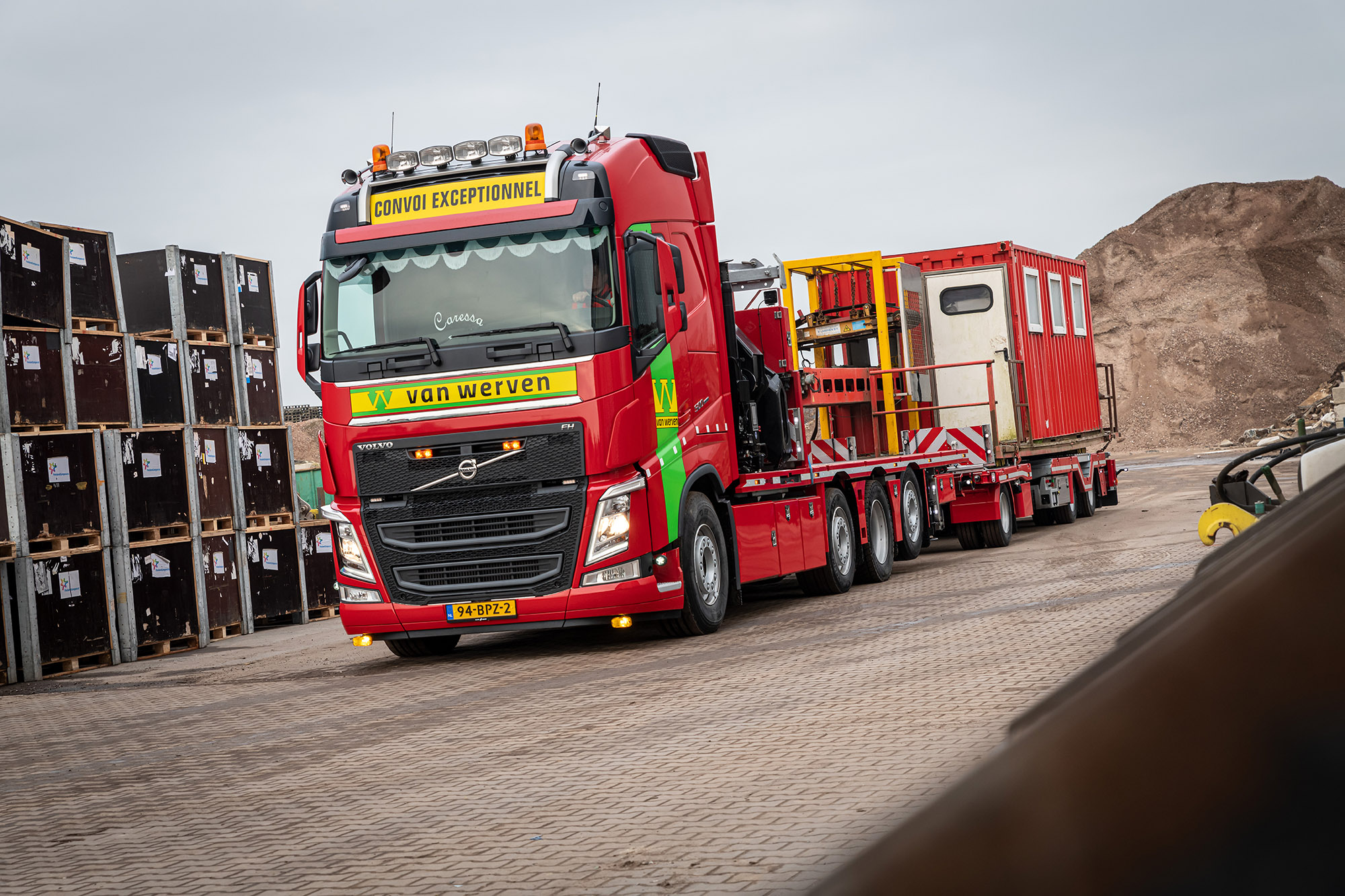 Met de nieuwe Volvo-trucks kan Van Werven zijn opdrachtgevers nog beter bedienen. Meuleman: “Met de rijplatentrucks kunnen we bijvoorbeeld nu ook de breedste rijplaten van 3,45 meter breed vervoeren en zelf laden en lossen. De laadbak en de autolaadkraan zijn daar op aangepast. De laadbak, die door opbouwer HSE is geleverd, is voorzien van verschillende rongen en rongposities zodat alle verschillende rijplaten veilig vervoerd kunnen worden en de autolaadkraan heeft een extra brede klem.”
