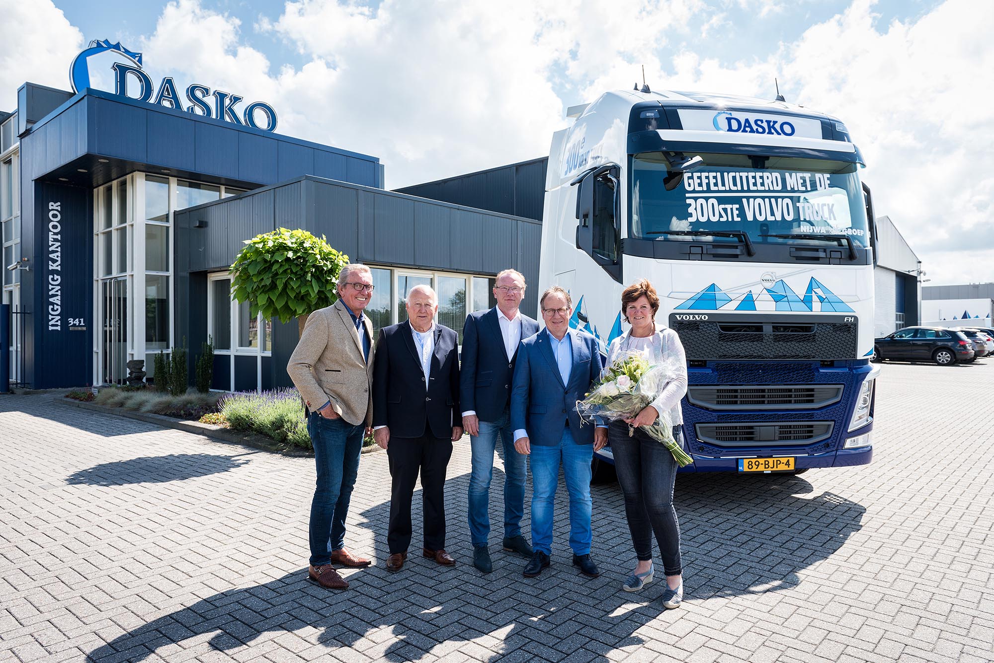 De directie van dealer Nijwa Groep leverde de nieuwe vrachtwagen persoonlijk af  bij directeur Bertus Dasselaar. Maar daar bleef het niet bij. Vanwege het heugelijke feit werd in het kantoor van Dasko zelfs een heuse gedenkplaquette onthuld, om de samenwerking tussen de Volvo-dealer uit Rijssen en de transporteur luister bij te zetten.