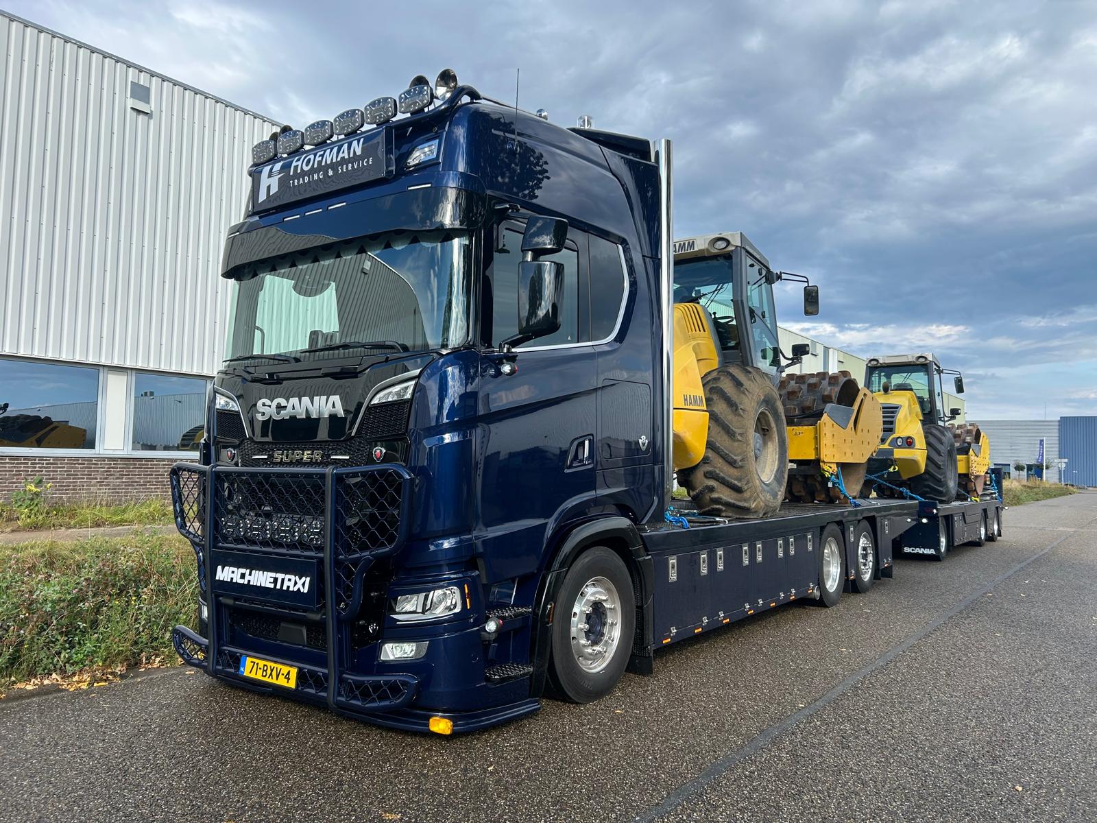 Voor Gerrit en Cornelis Hofman, beiden directeur eigenaar van Hofman Trading in Winterswijk, ging recent een droom in vervulling. Sinds kort zijn zij de eigenaar van een rondom luchtgeveerde Scania S770 als 6×2*4 bakwagen met een vlakke opbouw en gestuurde achteras. Het Scania topmodel wordt ingezet voor het vervoer van het grondverzetmaterieel waarin Gerrit en Cornelis wereldwijd handelen.