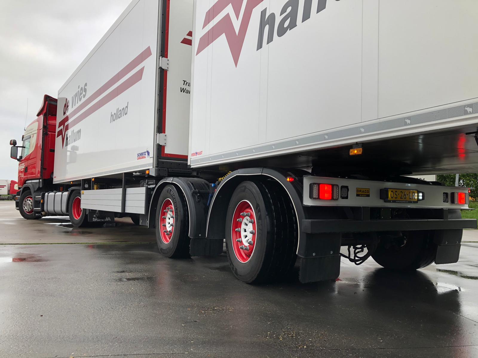 Transportbedrijf De Vries uit Hallum heeft twee LZV’s in gebruik genomen die zonder aanpassingen te gebruiken zijn in Duitsland. Deze b-double sliders zijn de eerste in Nederland waarbij er in Duitsland gereden mag worden met een standaard starre volgoplegger. De combinatie is ontwikkeld door Draco uit Sneek.