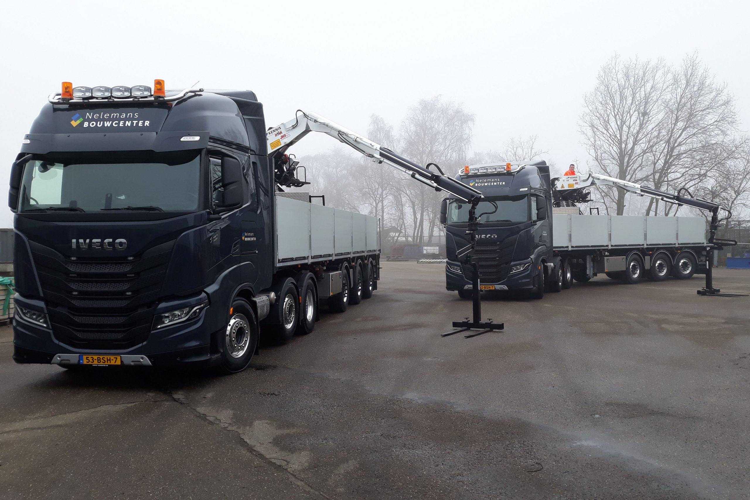 Duo Pacton/Kennis kraantrailers voor Bouwcenter Nelemans