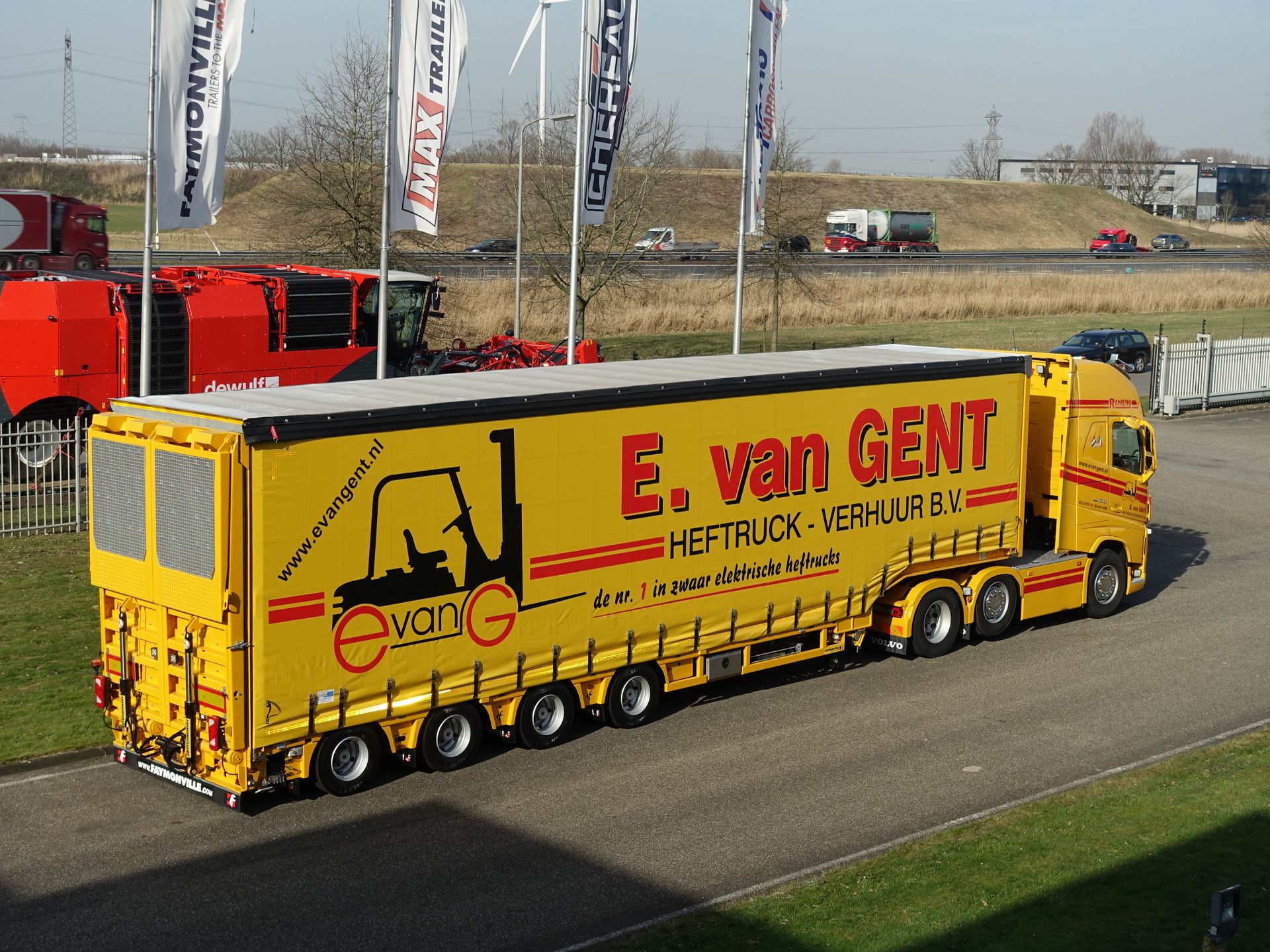 Van Gent Heftruck-Verhuur onderscheidt zich met name op het gebied van haar specialistische materieel en de daarbij behorende expertise als het gaat om onderhoud en service. Hun kracht is gelegen in een persoonlijke benadering van klanten, waarbij een goede begeleiding in het vinden van de juiste heftruck voor de juiste klus en het meedenken over de beste oplossingen centraal staat. Ten einde al het materieel door Europa te kunnen vervoeren en schoon en droog te kunnen afleveren heeft E. Van Gent bij Faymonville importeur Hertoghs Carrosserieën geïnvesteerd in nieuw materieel. Van Gent kocht één 3-assige en één 4-assige luchtgeveerde naloop gestuurde Faymonville MultiMAX semi-dieplader met een Hertoghs schuifzeilcarrosserie en dubbele oprijrampen.