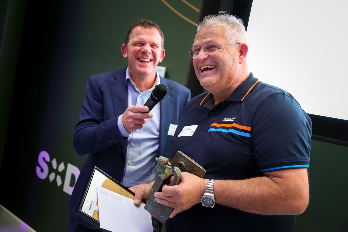 DAF Trucks beproevingsmonteur Eef Arens heeft de Noordhof-prijs gewonnen. Als ‘beste vakman van de regio Zuid-Oost Brabant’ kreeg hij de bijhorende loodzware bokaal uit handen van Enrico Werneke.