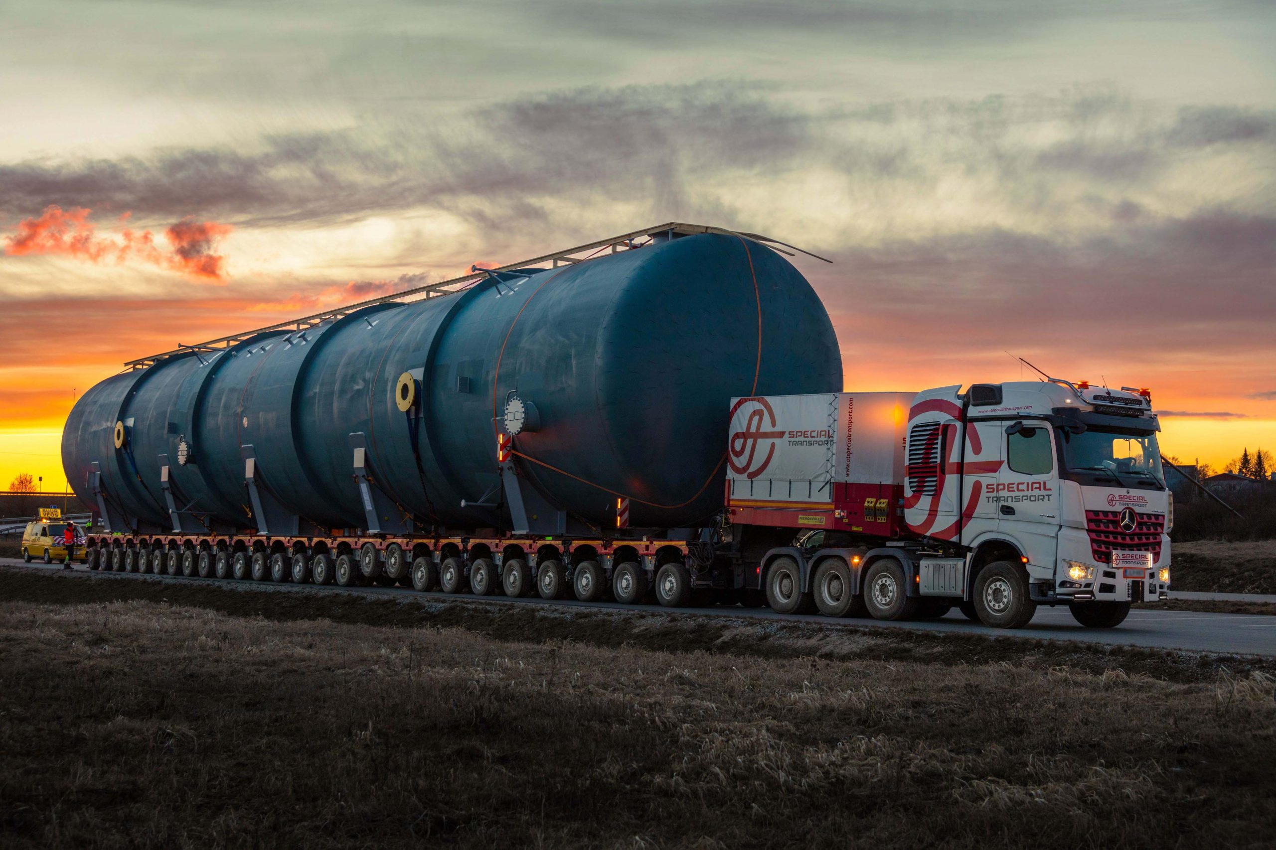 Zestig kilometer lijkt slechts een steenworp ver. Een project van de Finse specialisten van AT Special Transport toont echter aan hoeveel uitdagingen een dergelijke korte afstand kan inhouden. Drie dagen zijn nodig om een 195 ton zware voedingswatertank, rustend op 26 CombiMAX-aslijnen, over deze afstand te transporteren.
