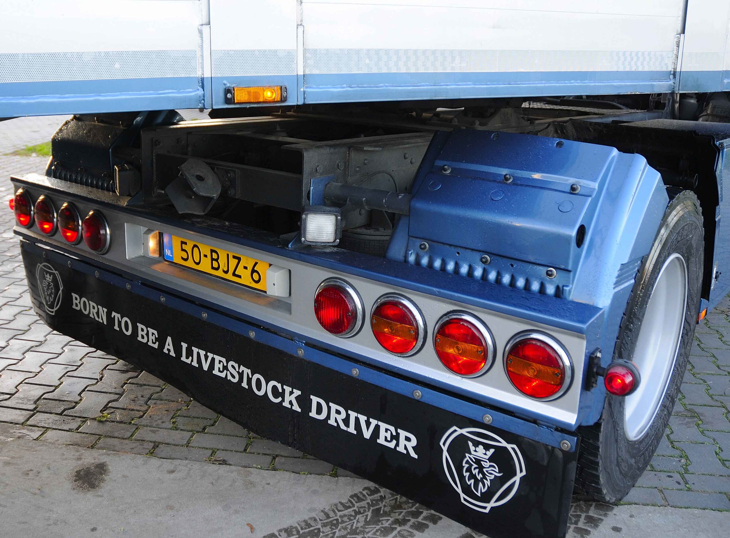 De Scania is voorzien van een mogelijkheid om de uitlaat open te zetten, al maakt Mike daar zeker in de dorpskernen geen gebruik van. Met de klep open laat de V8 zich horen en Mike glundert van oor tot oor. Diverse tegenliggers – ook niet-Scania-rijders – seinen en steken duimen omhoog. Het is eigenlijk wel een mooie tegenstelling: Mike rijdt met een vrachtauto die ouder is dan hijzelf. Zijn Scania reed namelijk al zes jaar rond toen Mike werd geboren. We wensen ze allebei nog vele veilige kilometers met hun knorrende uitlaat en biggetjes.
