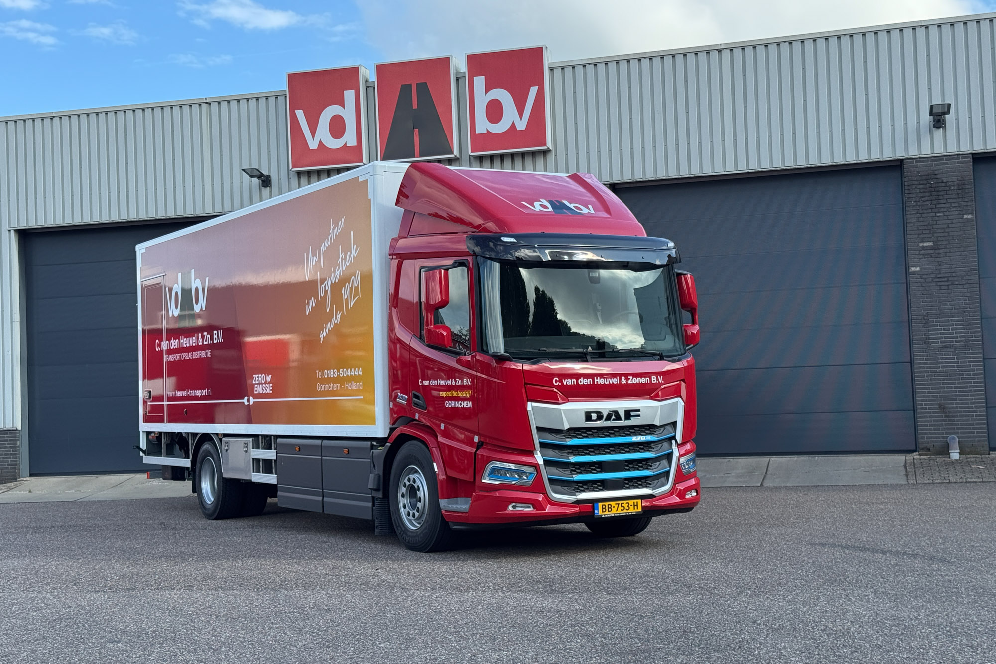 Bij C. van den Heuvel Transport uit Gorinchem is de eerste elektrische truck afgeleverd. Deze DAF XD 270 Electric 4×2 is meteen ook een van de eerste XD Electric bakwagens die in Nederland in gebruik wordt genomen.